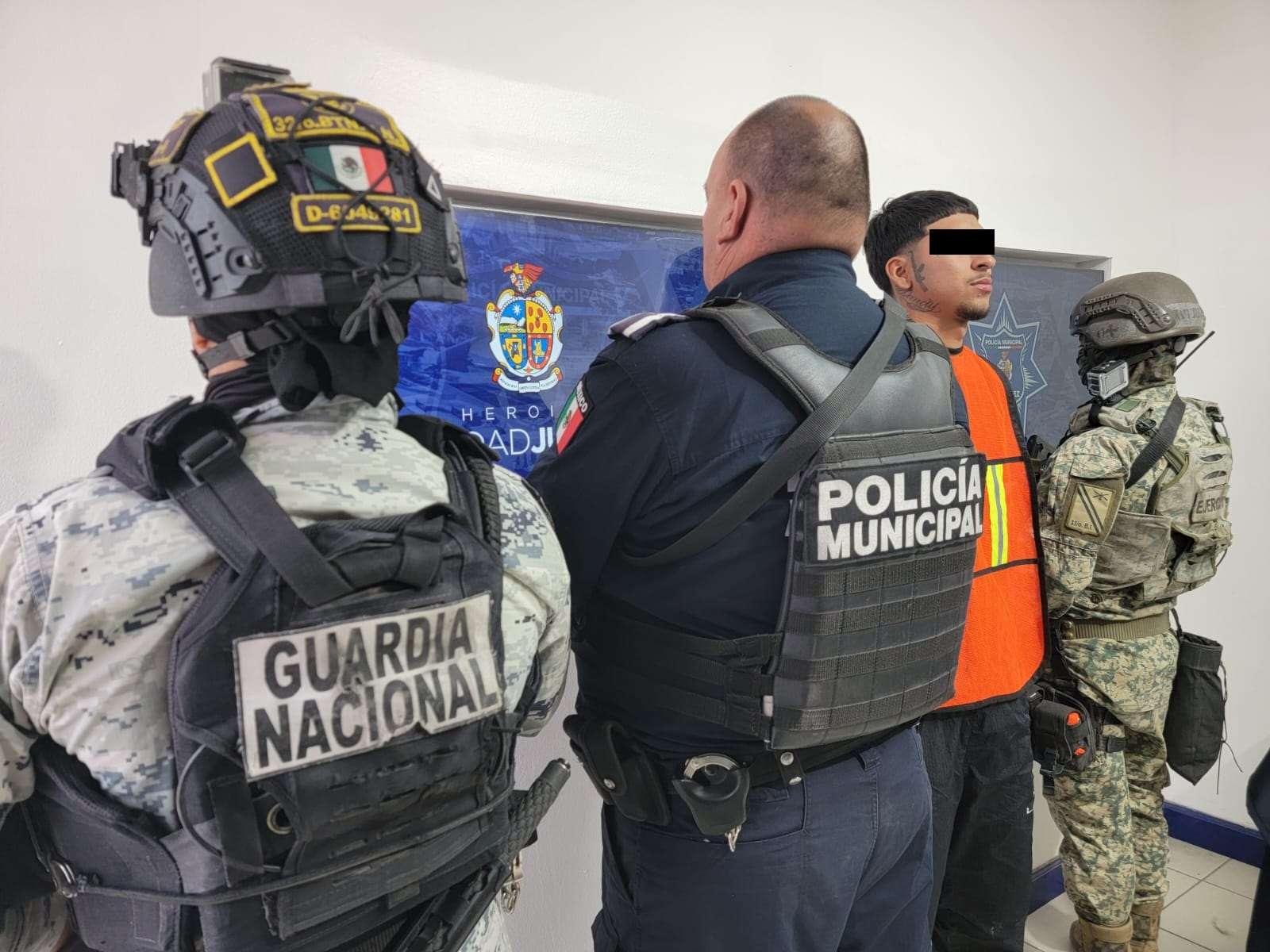 Ciudad Juárez.- Agentes de la Secretaría de Seguridad Pública Municipal en coordinación con Guardia Nacional y la Secretaría de la Defensa Nacional, arrestaron a Joseth Iván V. C, por su presunta responsabilidad en la comisión de delitos contra la ley federal de armas de fuego y explosivos.