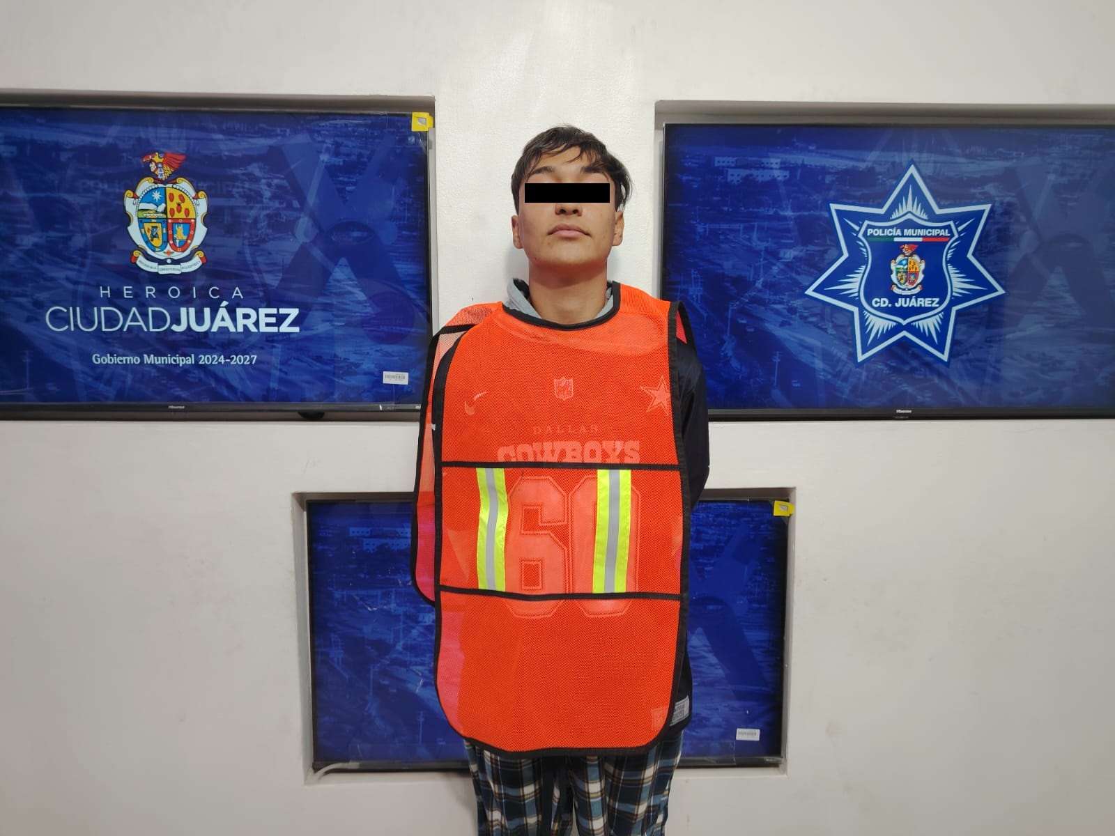 Ciudad Juárez.- Elementos de la Secretaría de Seguridad Pública Municipal arrestaron a José Eduardo A. M., por su presunta responsabilidad en la comisión de delitos contra la salud y contra la ley federal de armas de fuego y explosivos.