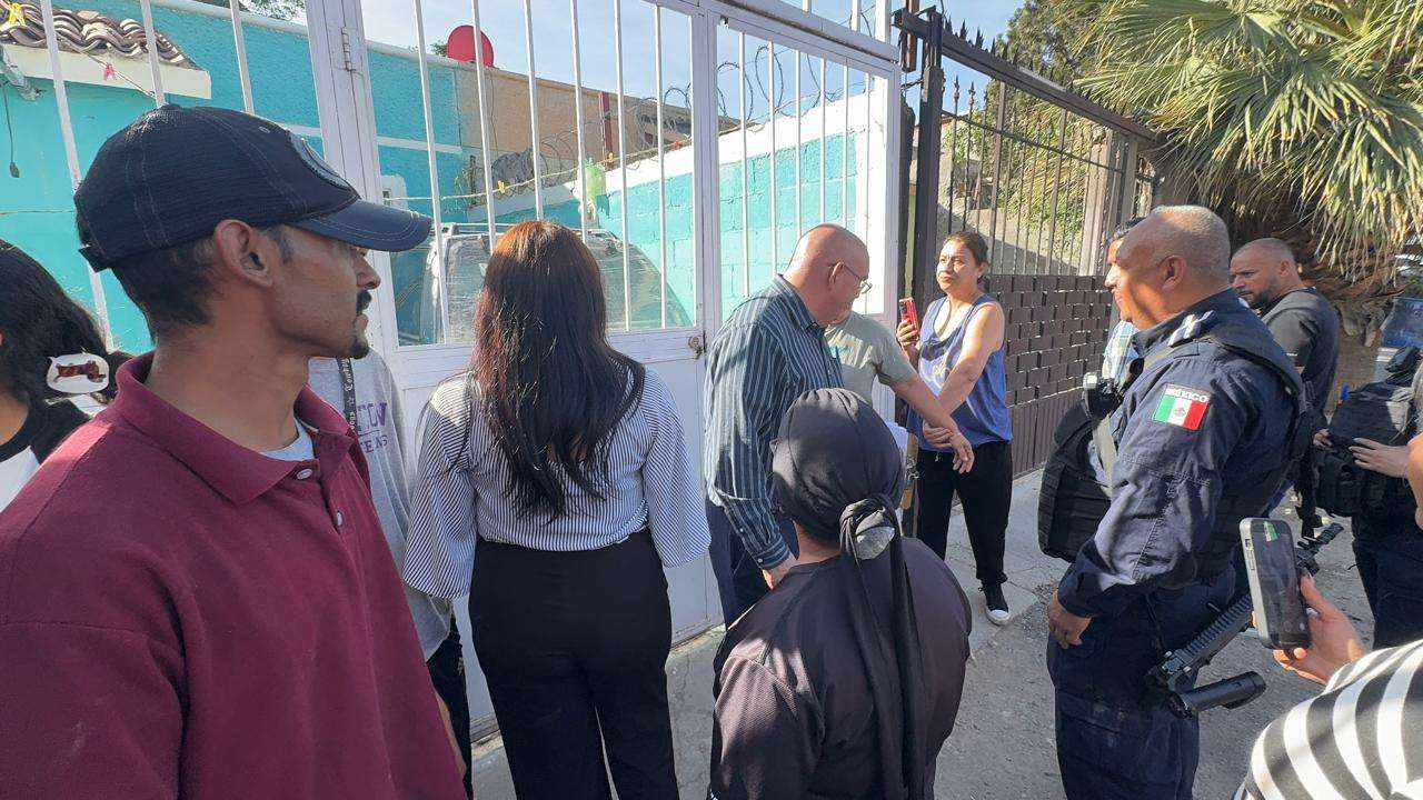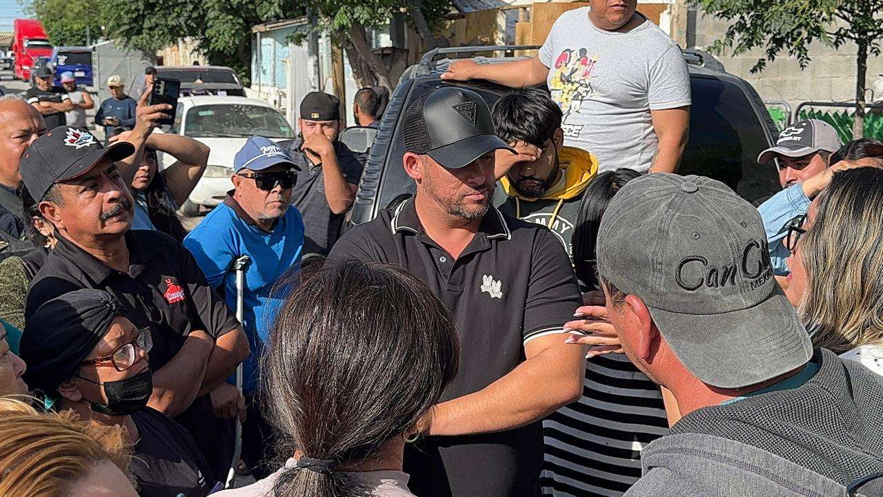 Un actuario de la Constructora Riggs apoyado por más de 20 unidades de Seguridad Pública acudió al lugar para hablar con las familias.