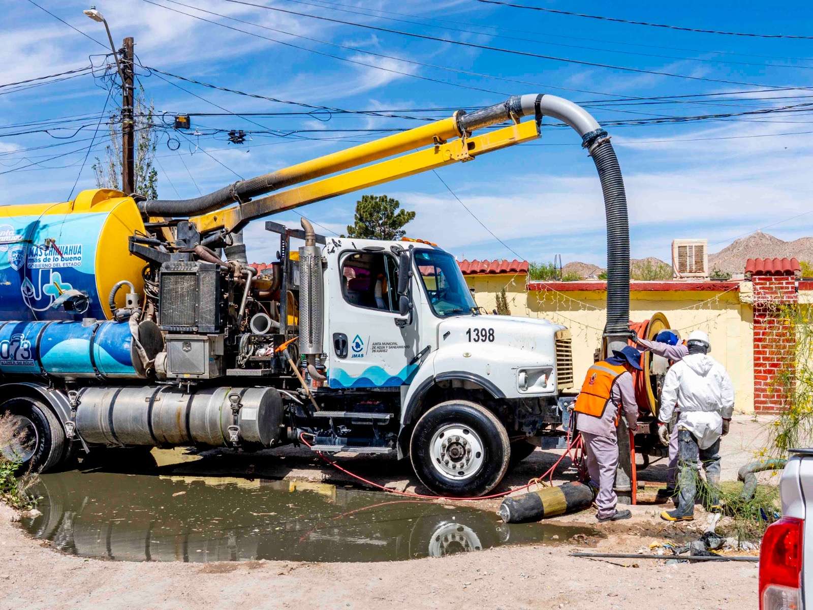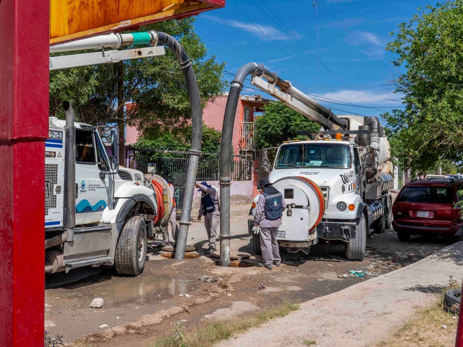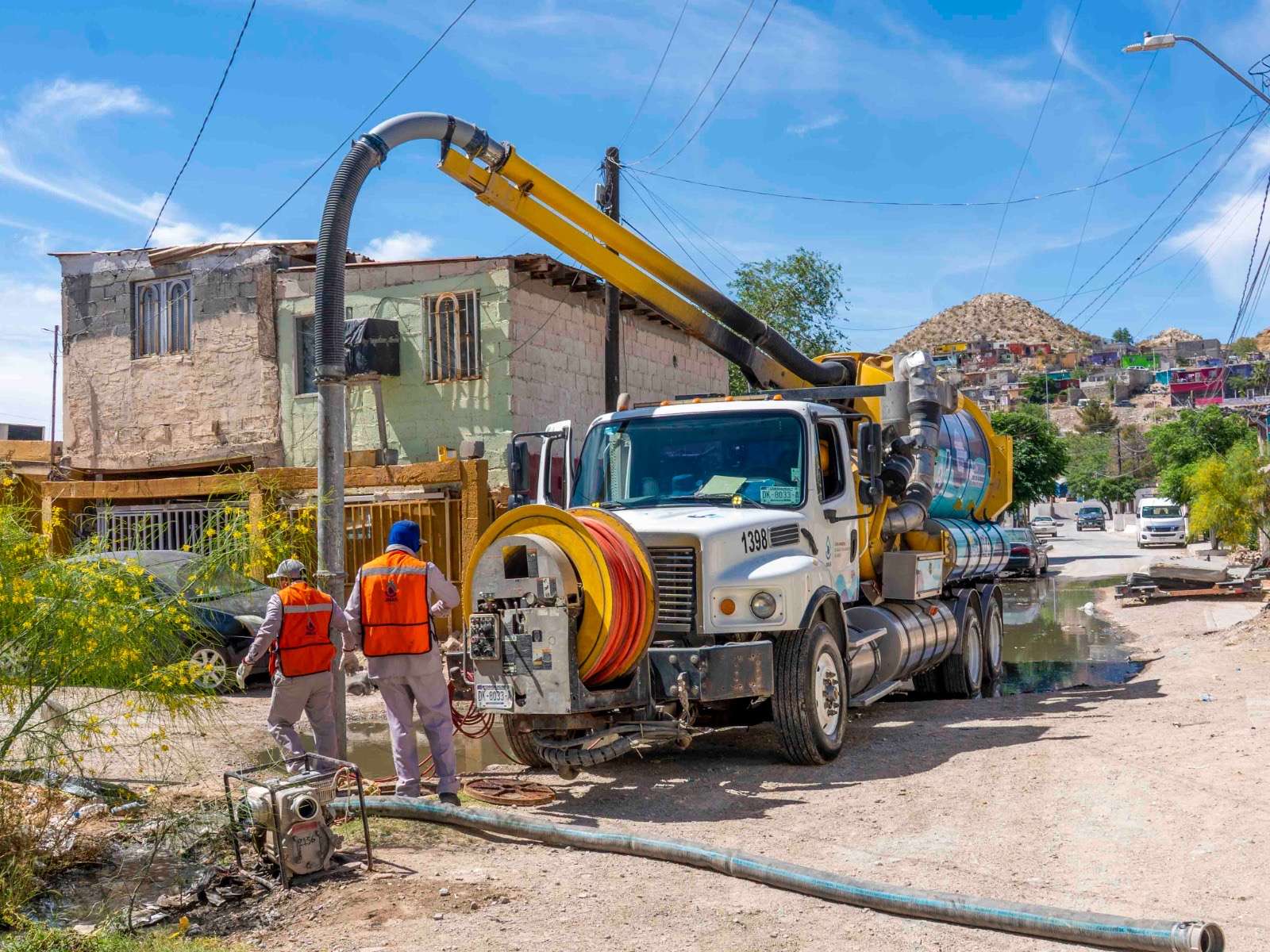 Ciudad Juárez.- La Junta de Agua y Saneamiento de Juárez (JMAS) continua con el mantenimiento preventivo del colector Nadadores en la Colonia Sara Lugo y Ladrillera para asegurar el correcto funcionamiento del sistema de drenaje en la zona.