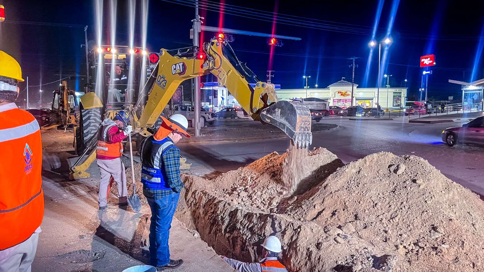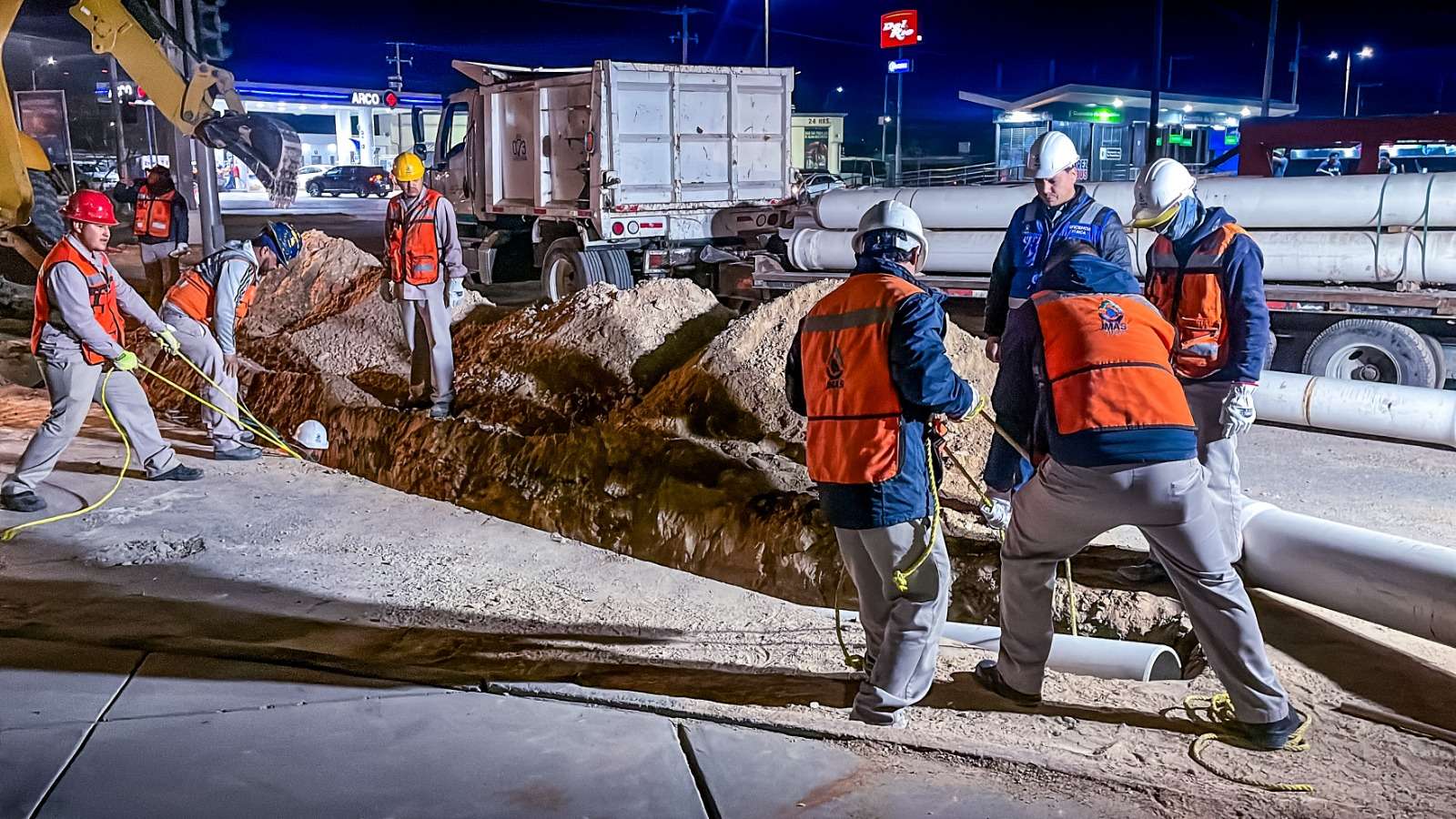Ciudad Juárez.- Como parte del proyecto de sectorización, la Junta de Agua y Saneamiento de Juárez (JMAS) trabajó por la noche de este jueves en la instalación de tubería nueva de 12 pulgadas, la cual conectará dos pozos ubicados en Parajes de Oriente con el Tanque Superficial San Francisco, la cual brindará mejor suministro del agua en esta zona.