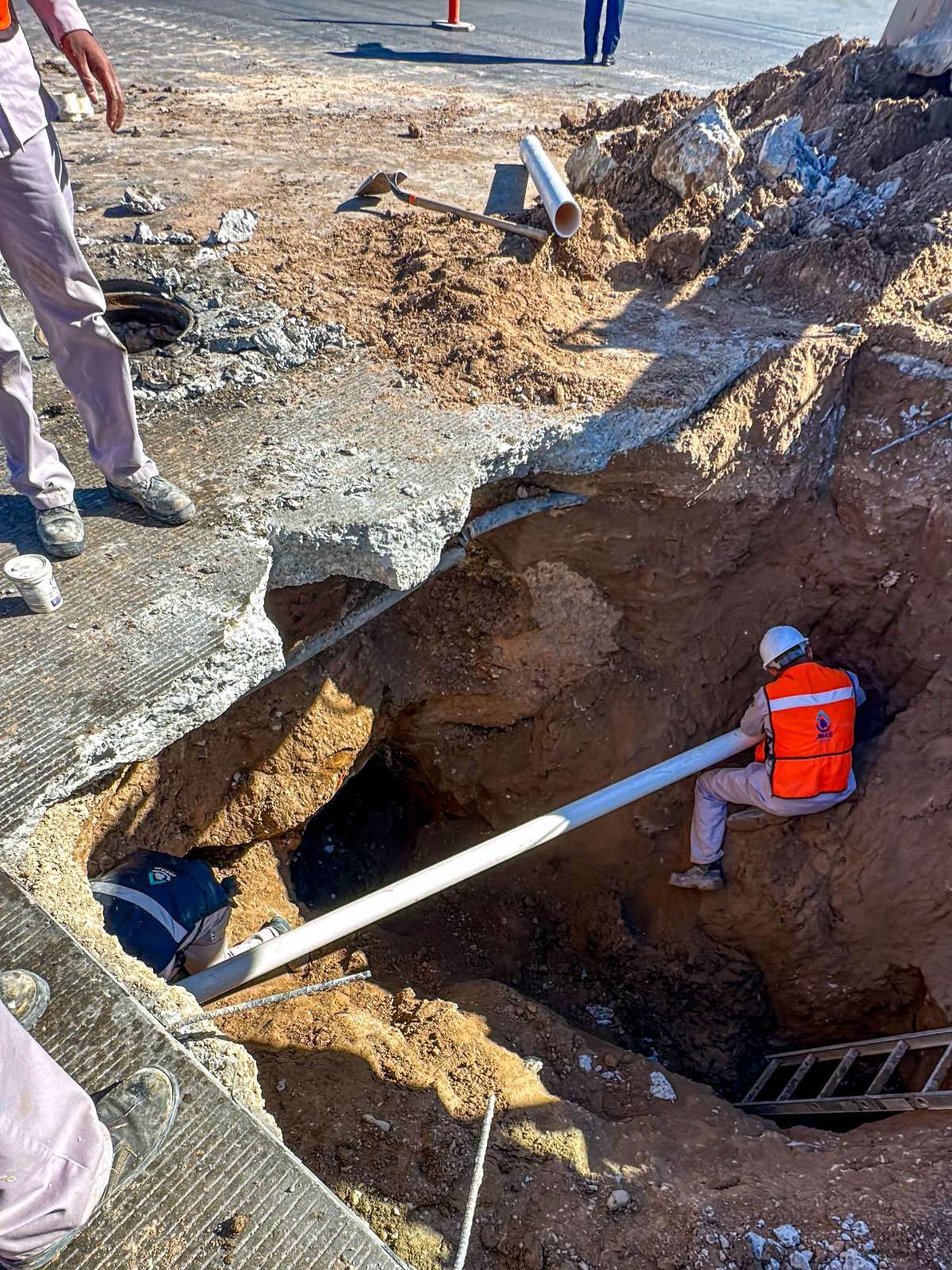 Desde las 6:00 de la mañana de este miércoles, personal de las áreas de Alcantarillado, Agua Potable y Bacheo, trabajaron de manera coordinada para agilizar la intervención en esta transitada vialidad, como parte de las acciones, el colector en desuso fue clausurado mediante relleno de concreto, con la finalidad de evitar que los gases continúen afectando la red general.