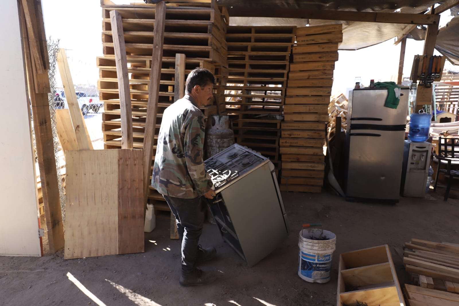 Ciudad Juárez.- Como parte del programa permanente de Reordenamiento Urbano del Gobierno Municipal, diversas dependencias realizaron un operativo para retirar un negocio que operaba de manera irregular en un espacio público, donde se detectó invasión de la vía, acumulación de residuos industriales y riesgos de seguridad.