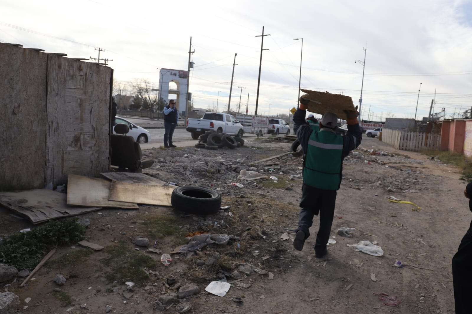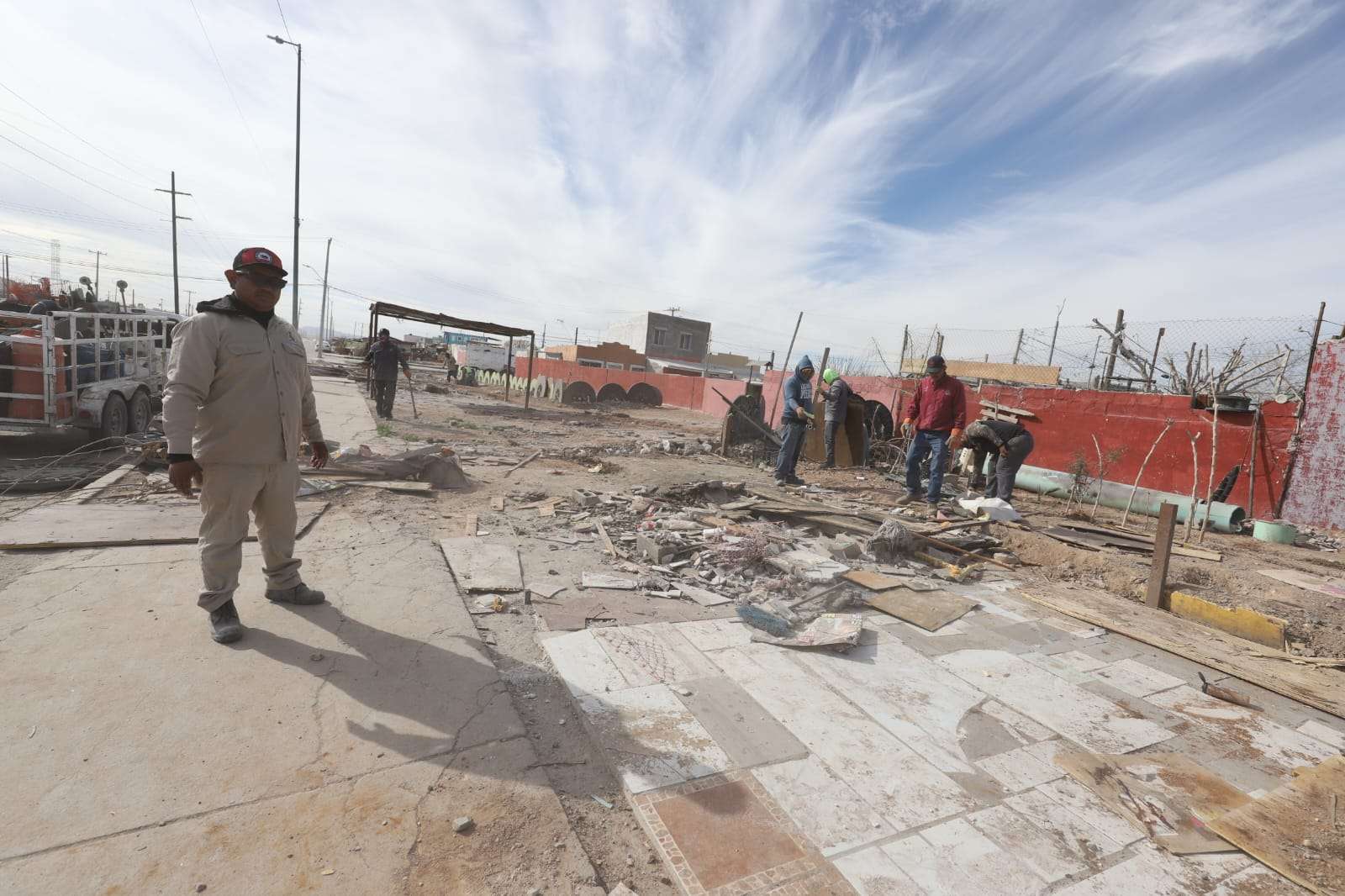 En el operativo se realizaron labores de limpieza final, retiro de residuos generados por la desinstalación de estructuras y demolición de elementos construidos indebidamente sobre espacios públicos, como una barda.