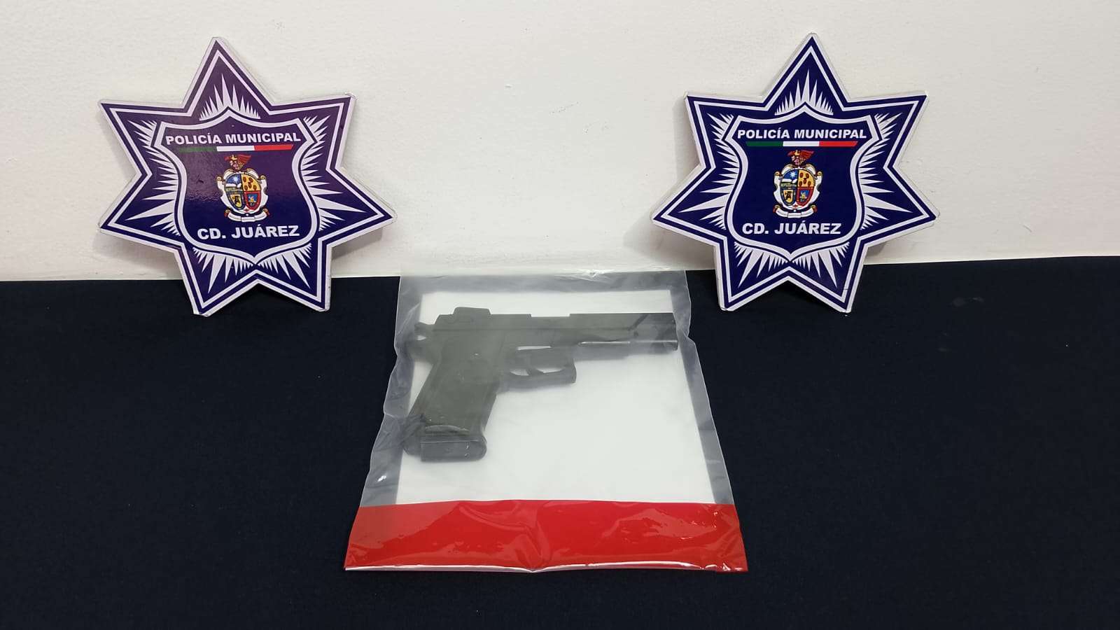 En ese momento, los policías le informaron al presunto responsable que sería detenido, y al realizarle una inspección preventiva por protocolos de seguridad, le encontraron fajada a la altura de la cintura una pistola que resultó ser de postas.