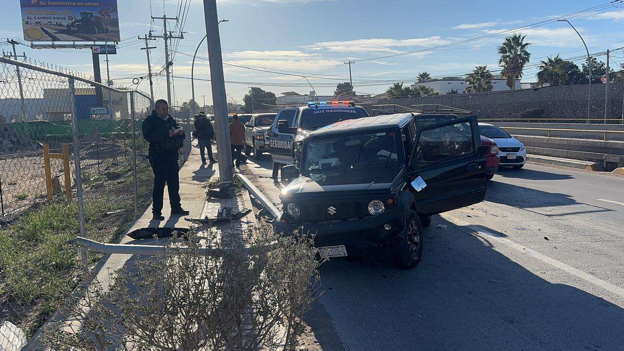 Autoridades de Vialidad informaron que un Jeep negro invadió carril y se impactó con una camioneta Ford 150 lo que provocó que chocará con un arbotante y se volcara.
