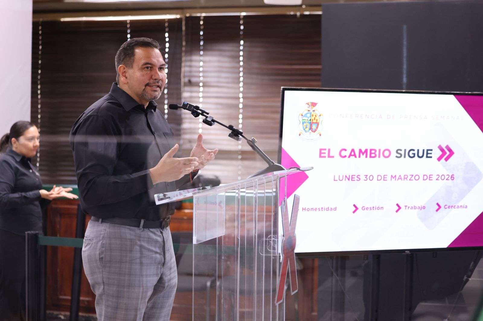 Ciudad Juárez.- En la conferencia de prensa que ofrece cada semana, el Presidente Municipal, Cruz Pérez Cuéllar dio a conocer que la segunda jornada del programa “Juárez amanece limpio” tuvo un magnífico resultado, logrando sumar a ciudadanos, así como colectivos y deportistas, quienes en esta ocasión trabajaron en la Plaza Cervantina, situada en la Zona Centro.