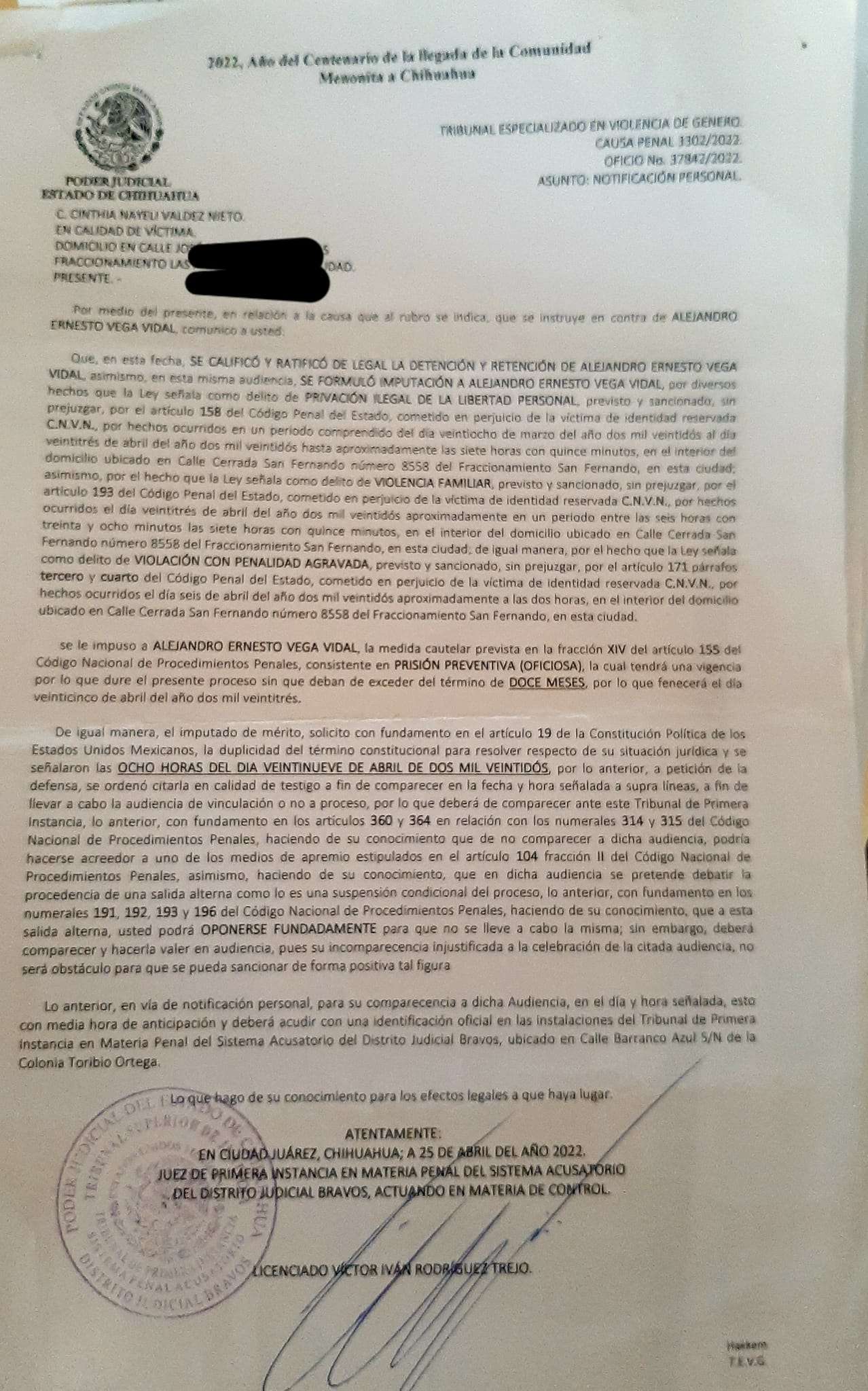 Finalmente la ministerial me localizo el 06 de abril, alejandro movió sus influencias y dijo que el me estaba resguardando. Por eso mi familia me seguía buscando pero ya nadie hizo nada. Yo seguí privada de mi libertad Logre escapar un 23 de abril y denuncie , pongo foto de mi expediente. Detuvieron a alejandro y le conté todo a las autoridades, que me violo que me.tenia secuestrada y me golpeó muchas veces , pero alejandro tenía muchas influencias en fiscaliza de la mujer y tenía amistades con poder una MAGISTRADA MARGARITA CARDENAS Y SU ESPOSO UN JUEZ, Y UN SEÑOR DE NOMBRE GABRIEL RIVERA BARRENO QUE TRABAJA EN JUZGADOS PENALES ADEMAS DE MINISTERIOS PUBLICOS DE FISCALIA DE LA MUJER, mis exámenes médicos se perdieron mágicamente y en la audiencia lo dejaron en libertad .
