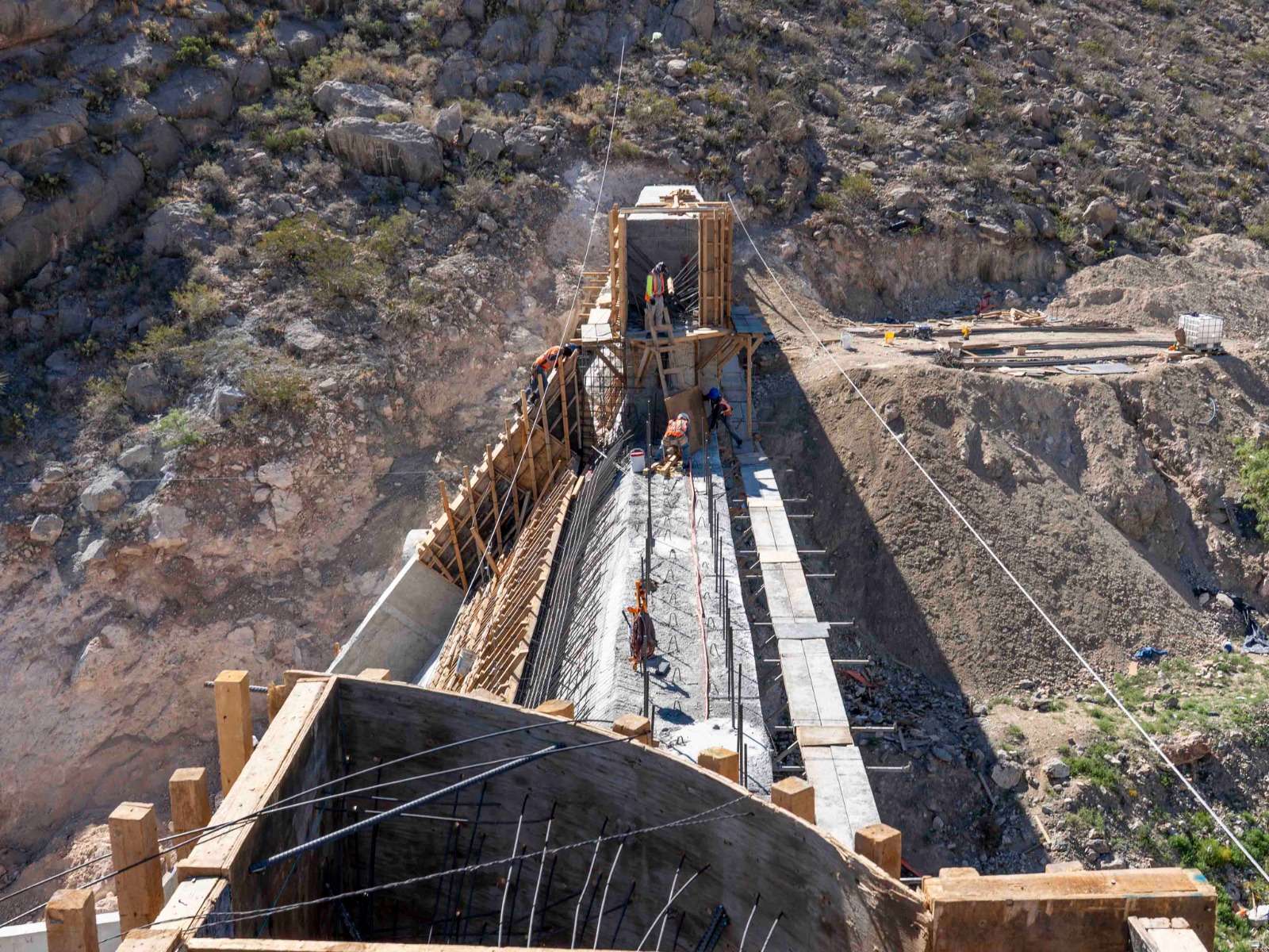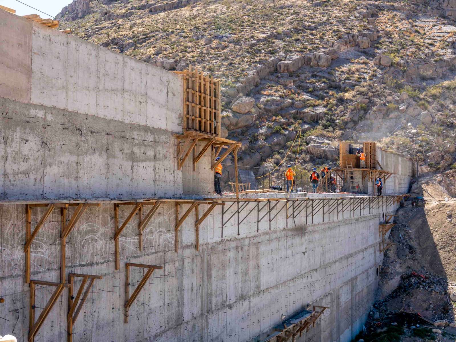 El ingeniero Cesar Triana, director de Obra de la JMAS, informó que la próxima semana se llevará a cabo el colado de concreto en una de las áreas más relevantes de la presa, estructura donde inicia la descarga del agua al alcanzar su nivel máximo de almacenamiento.