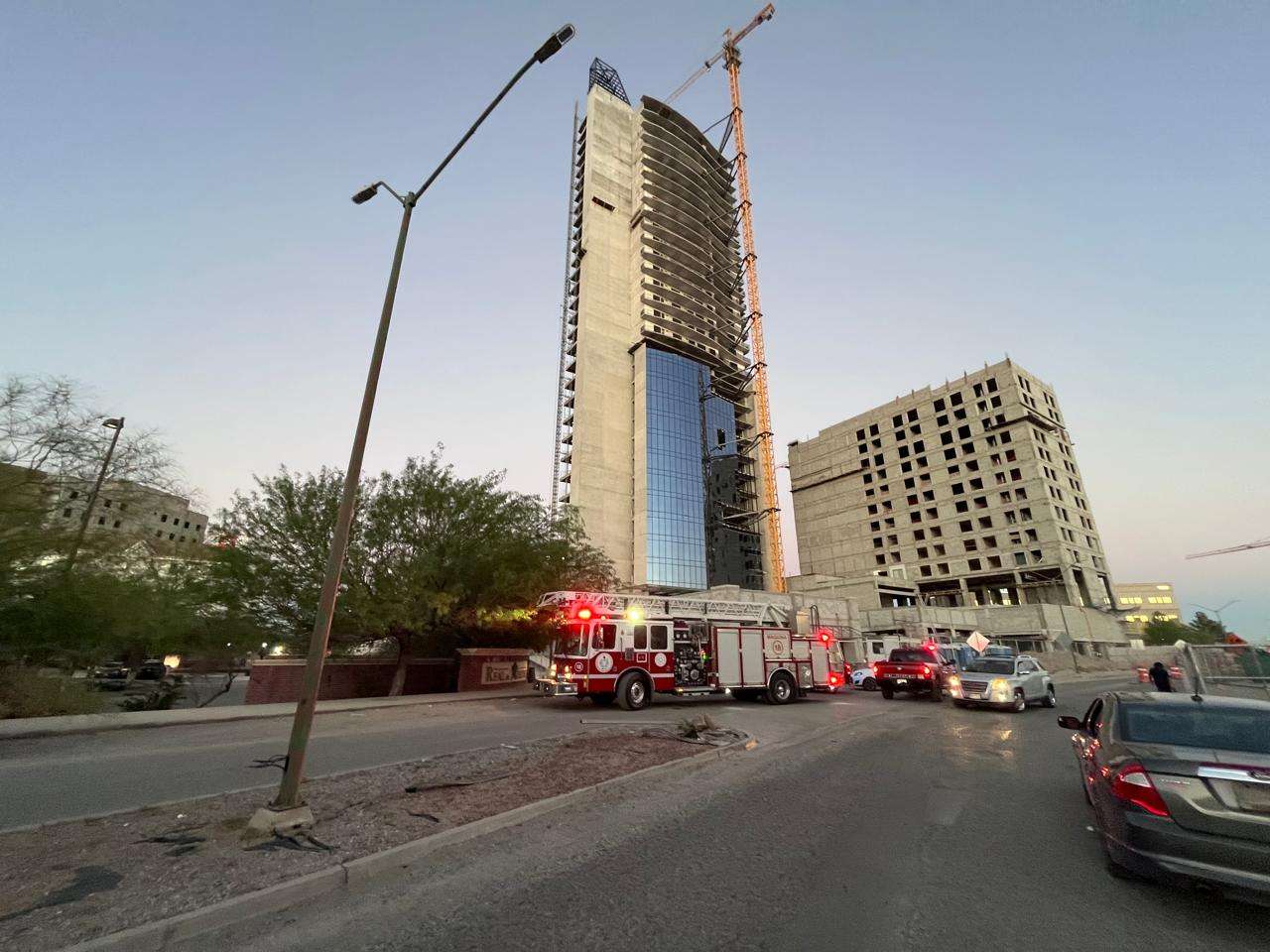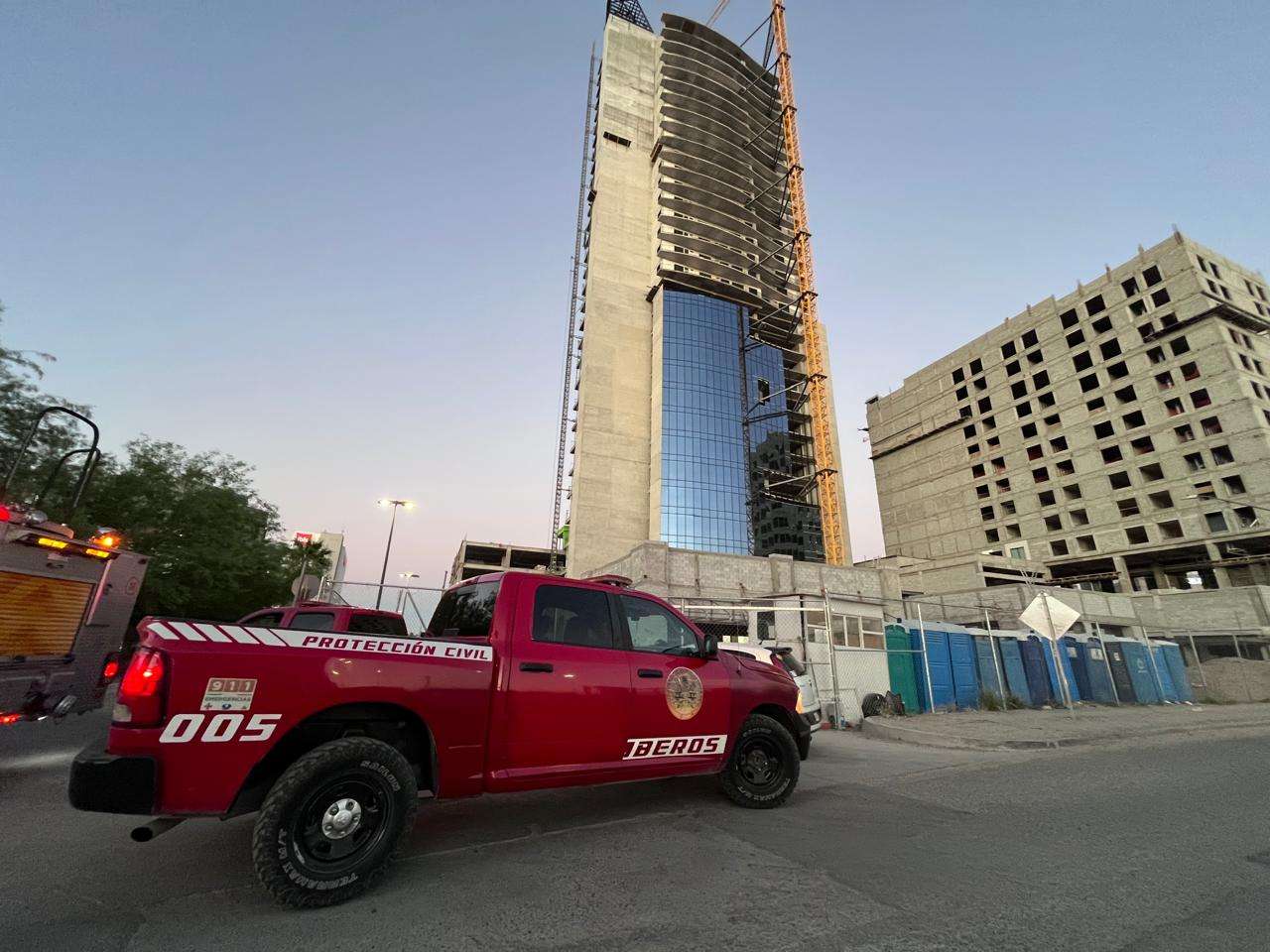 Ciudad Juárez.- Un trabajador de la construcción de la torre Quorum generó una fuerte movilización de cuerpos de emergencia la tarde de este miércoles, luego de quedar colgado en un andamio tras desprenderse mientras realizaba labores en lo alto de una torre en construcción.