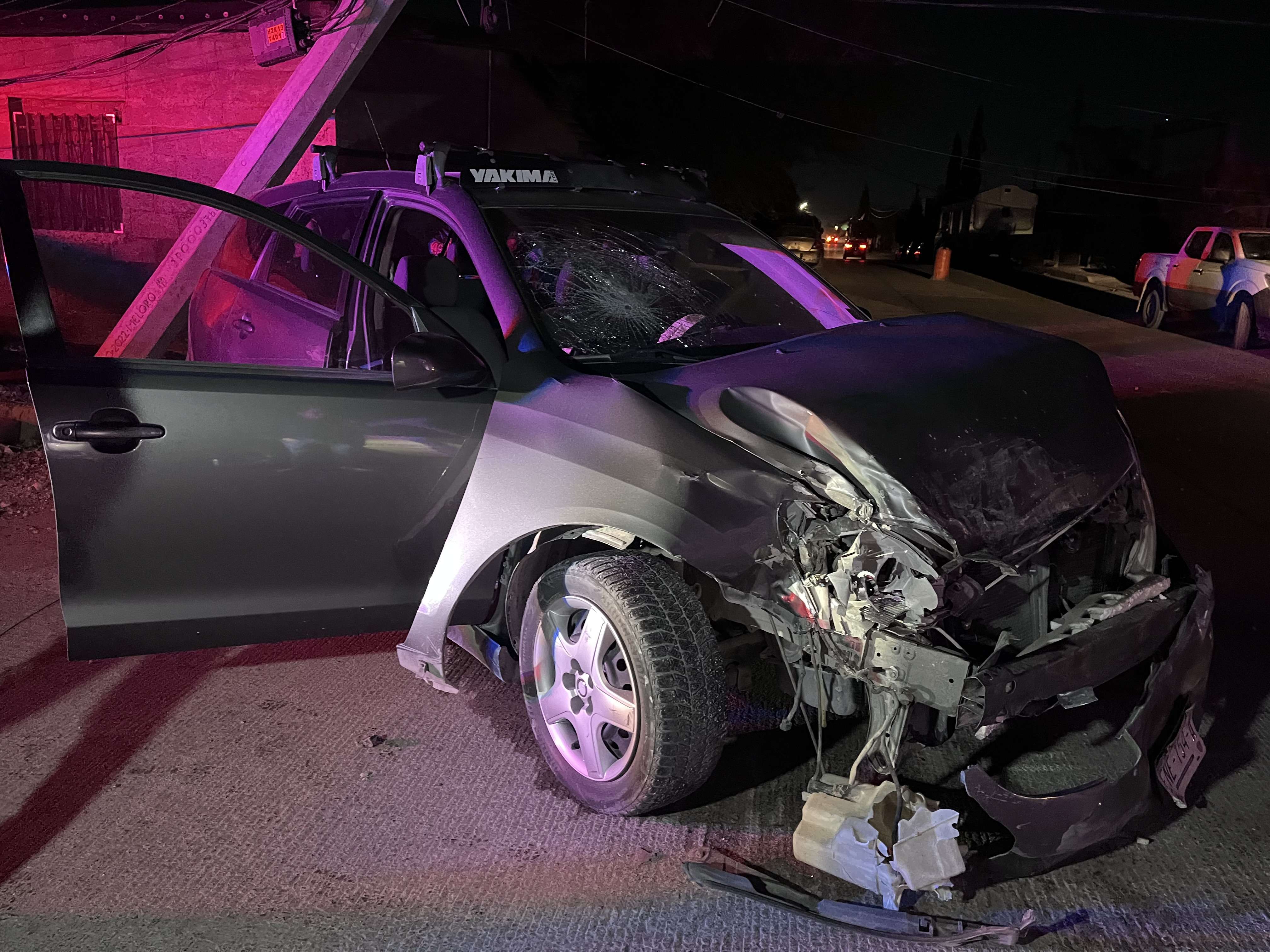 Ciudad Juárez.- Un aparatoso accidente ocurrido en la colonia División del Norte dejó como saldo tres personas lesionadas, dos vehículos con pérdidas totales y un poste de la Comisión Federal de Electricidad (CFE) derribado.