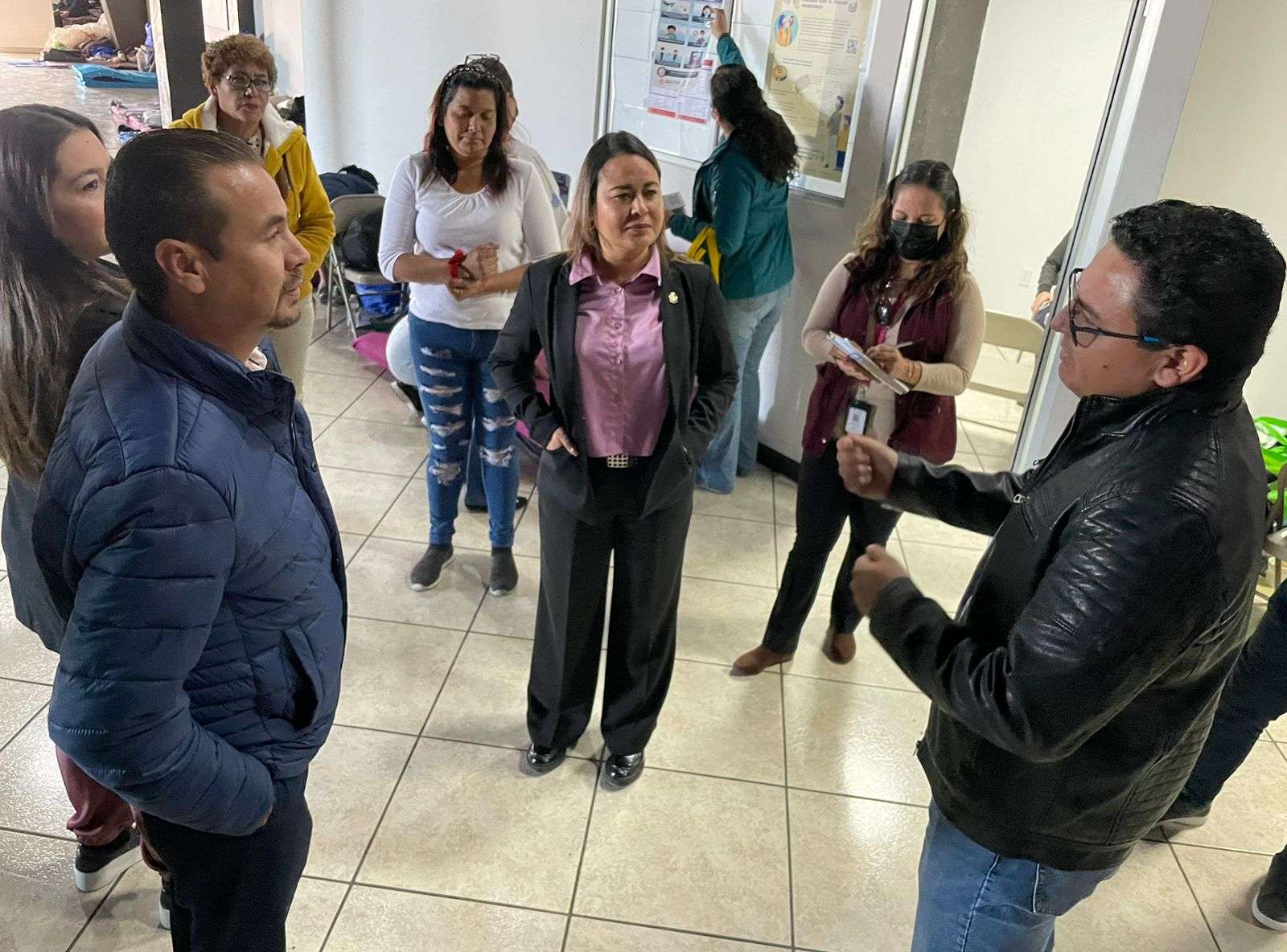 “Los regidores Edith Arredondo, Tania Maldonado y Jorge Bueno vieron cuáles son las necesidades y dinámicas en Casa Onix, para después visitar el campamento instalado a un lado del río Bravo para entregar varias cobijas”, dijo Santiago González Reyes, director de Derechos Humanos.