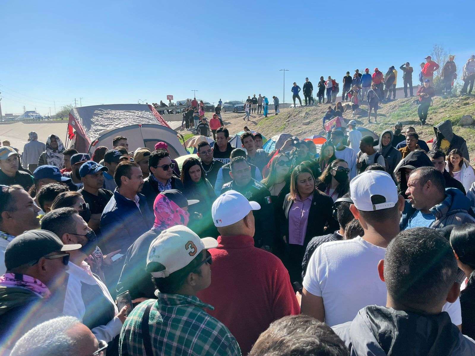 Señaló que ofrecieron 100 espacios disponibles en el albergue municipal Kiki Romero, sin embargo, las personas en situación de movilidad se niegan a retirarse de este campamento, pues con esta acción, pretenden ser visibles para el gobierno de Estados Unidos.