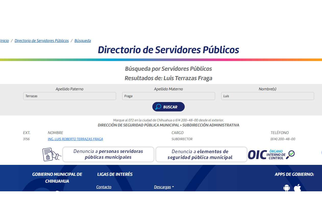 Dicen que Luis El Tomatito Terrazas Fraga, sigue trabajando en el municipio y cobrando sus jugosas quincenas, que solo lo bajaron del puesto que tenía como subdirector administrativo de la Dirección de Seguridad Pública Municipal. La semana pasada se dio a conocer la separación de Luis Terrazas Fraga, del puesto mencionado, luego de que publicara en las redes sociales comentarios considerados misóginos en contra de la senadora de Morena, Andrea Chávez. Pues ahora andan diciendo que El Tomatito sigue en la Municipal, claro, no con el mismo puesto, sino como auxiliar de la que la que se quedó de manera provisional en el cargo que él tenía. Por lo pronto, en el directorio de la Presidencia Municipal Luis El Tomatito Terrazas, sigue apareciendo en el cargo de subdirector administrativo de la Dirección de Seguridad Pública Municipal.