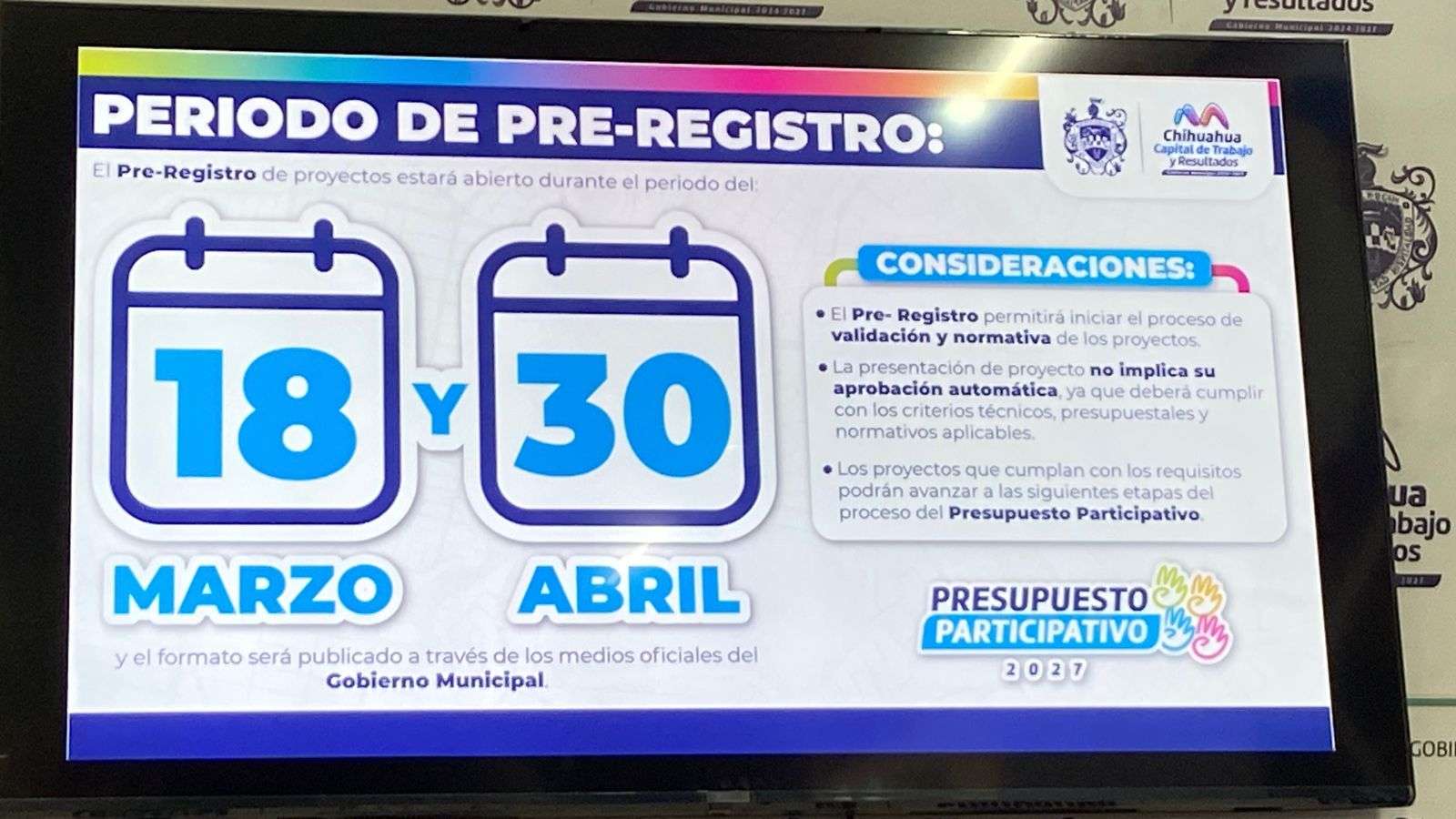 Chihuahua.– Laura Contreras Duarte, coordinadora de Participación Ciudadana, dio a conocer las fechas para realizar el pre registro de proyectos para participar en el Presupuesto Participativo.