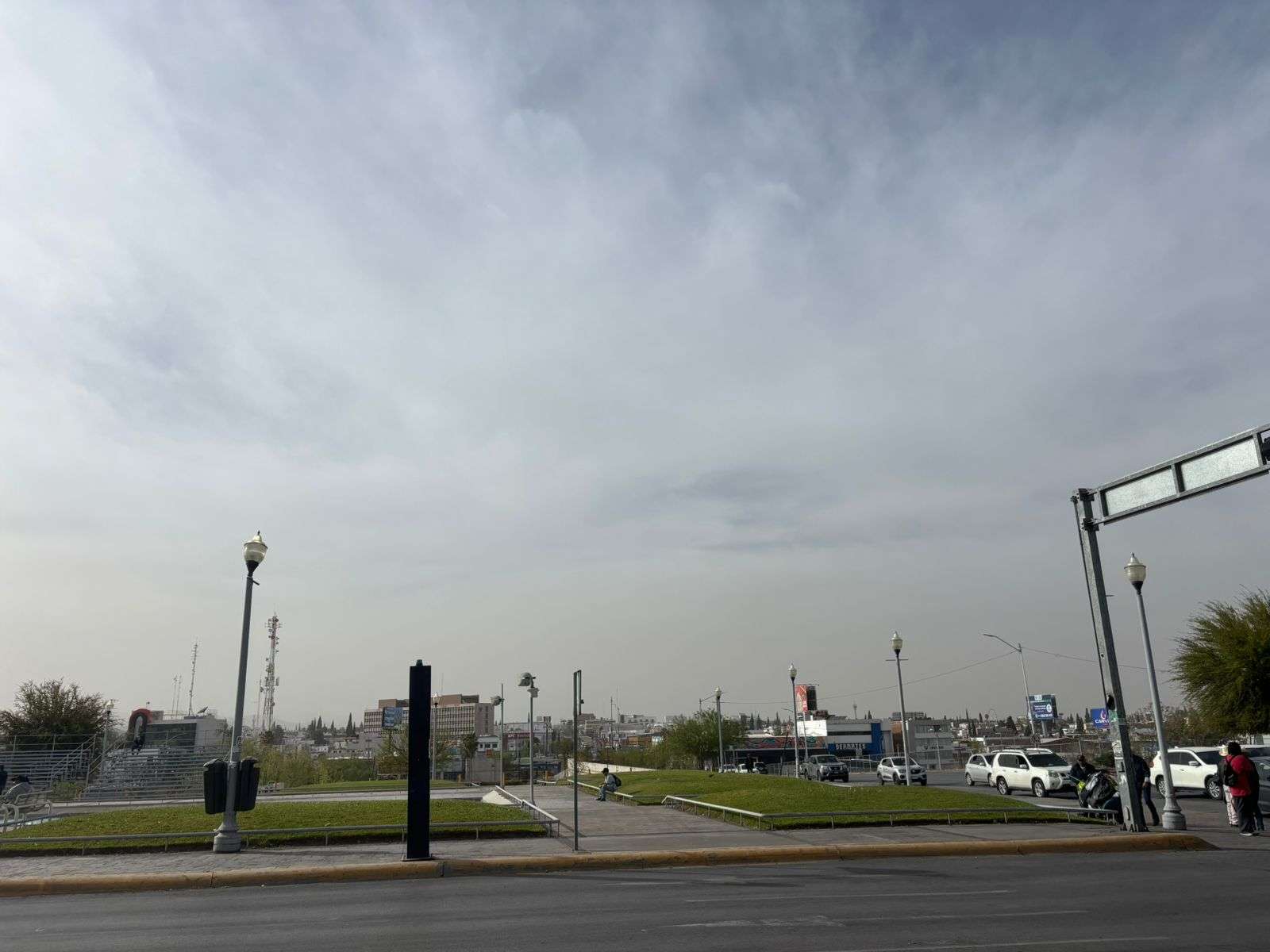 Desde las primeras horas de hoy, la visibilidad en el ambiente se vio drásticamente reducida por la gran cantidad de partículas de polvo suspendidas. Pese a que estas condiciones no son propicias para la actividad física a la intemperie, la afluencia en los corredores y canchas del complejo deportivo se mantuvo constante.