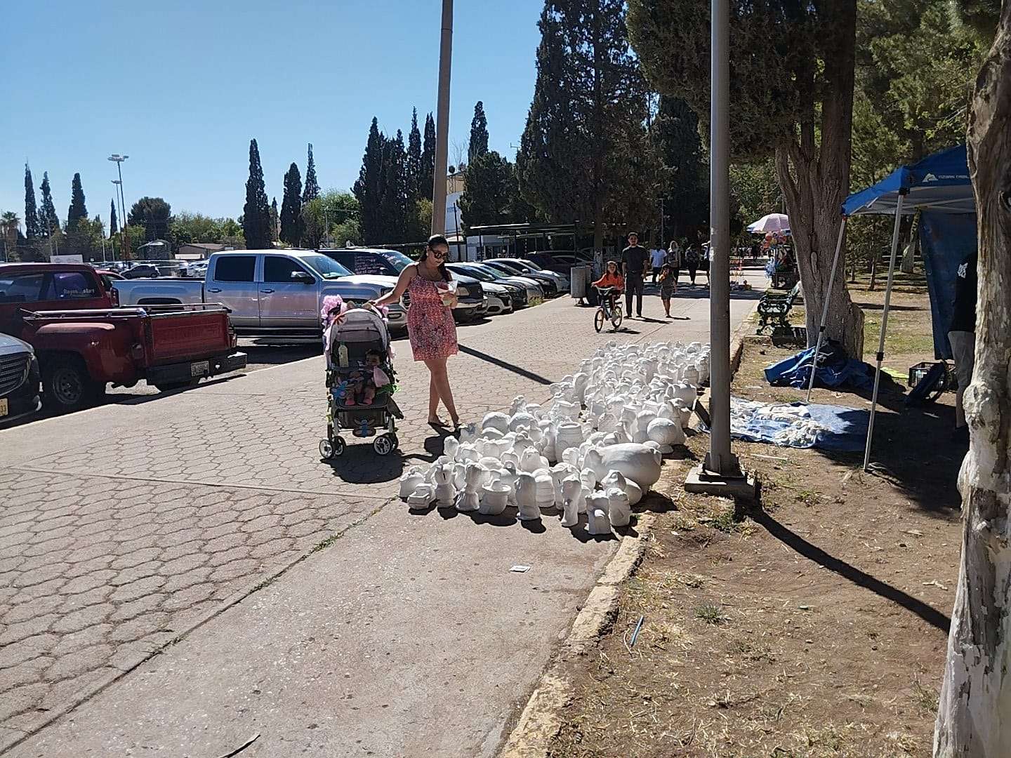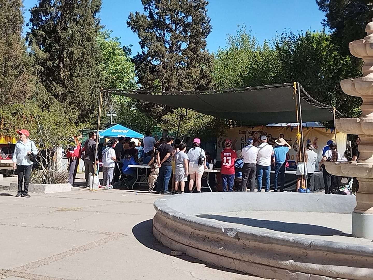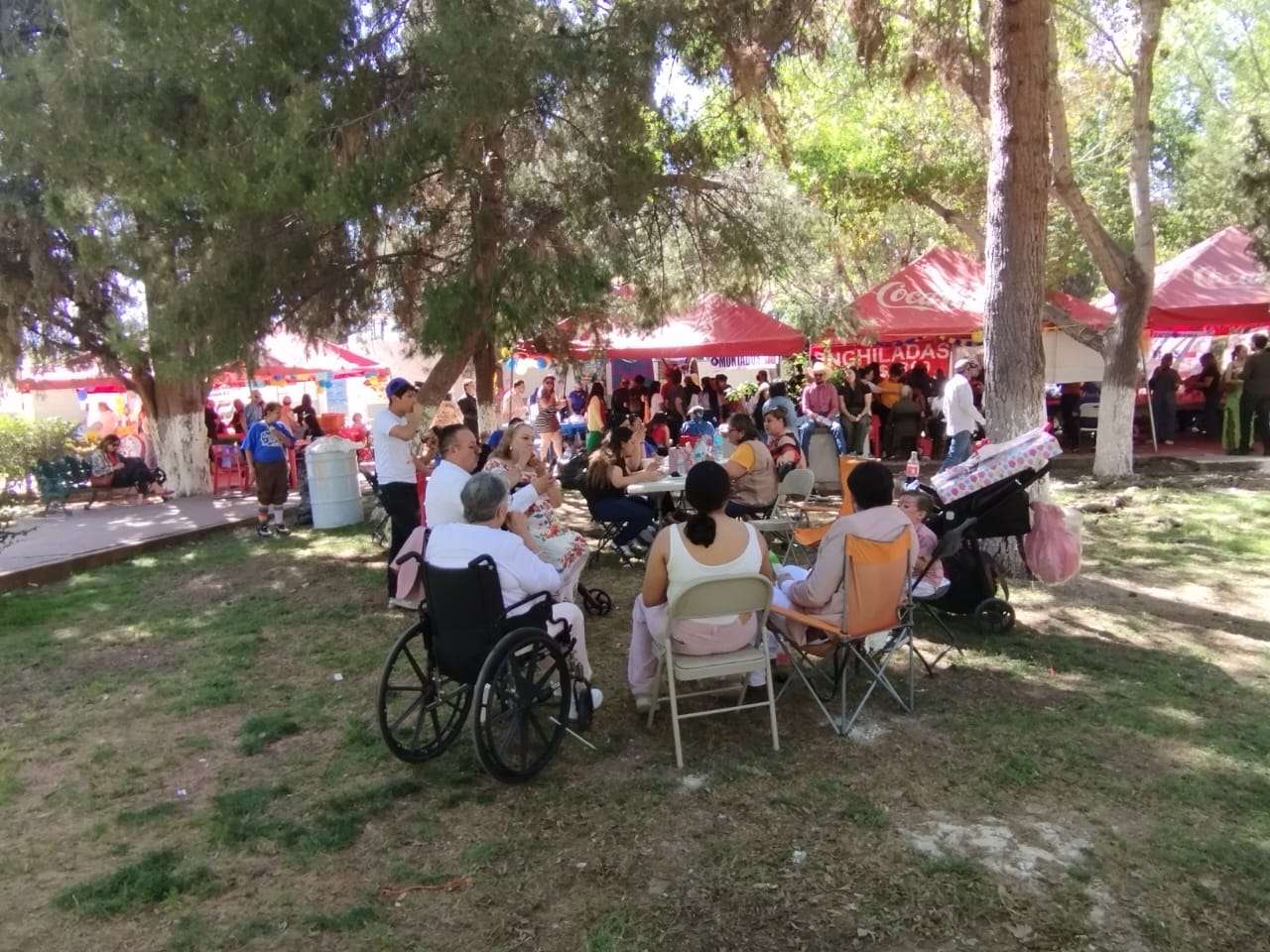 Pese a la densa arboleda de la Deportiva, la sombra natural resultó insuficiente frente al intenso calor, lo que obligó a que tanto la kermés institucional como la venta de productos de la Sierra Tarahumara se desarrollaran bajo carpas y sombrillas para proteger a los asistentes de la radiación solar.