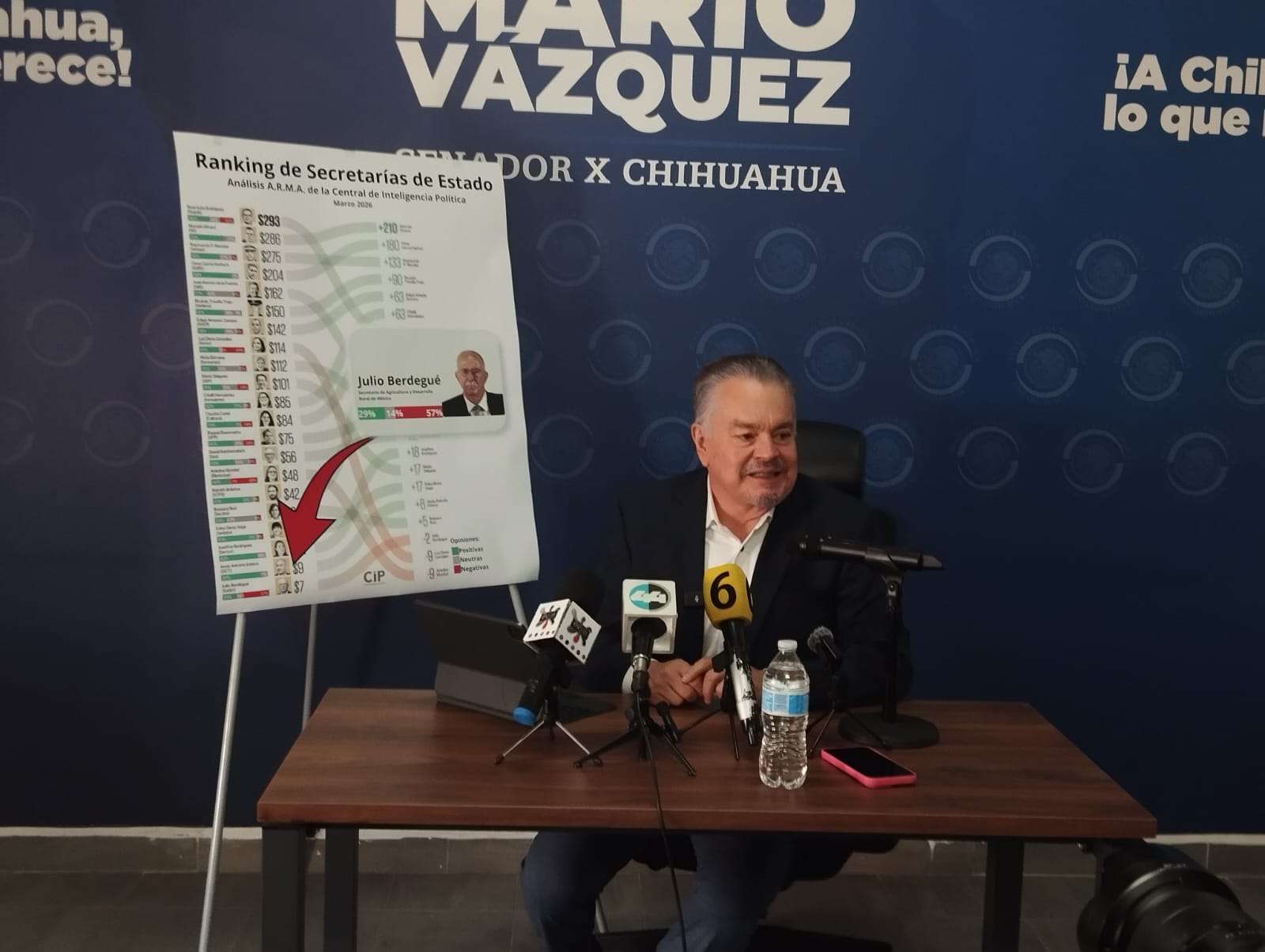 Chihuahua.- Esta tarde, durante una rueda de prensa, el senador del PAN, Mario Vázquez, solicitó la comparecencia de Julio Berdegué, titular de la Secretaría de Agricultura y Desarrollo Rural (SADER), ante lo que calificó como abandono del campo.