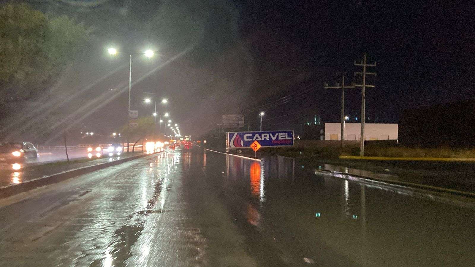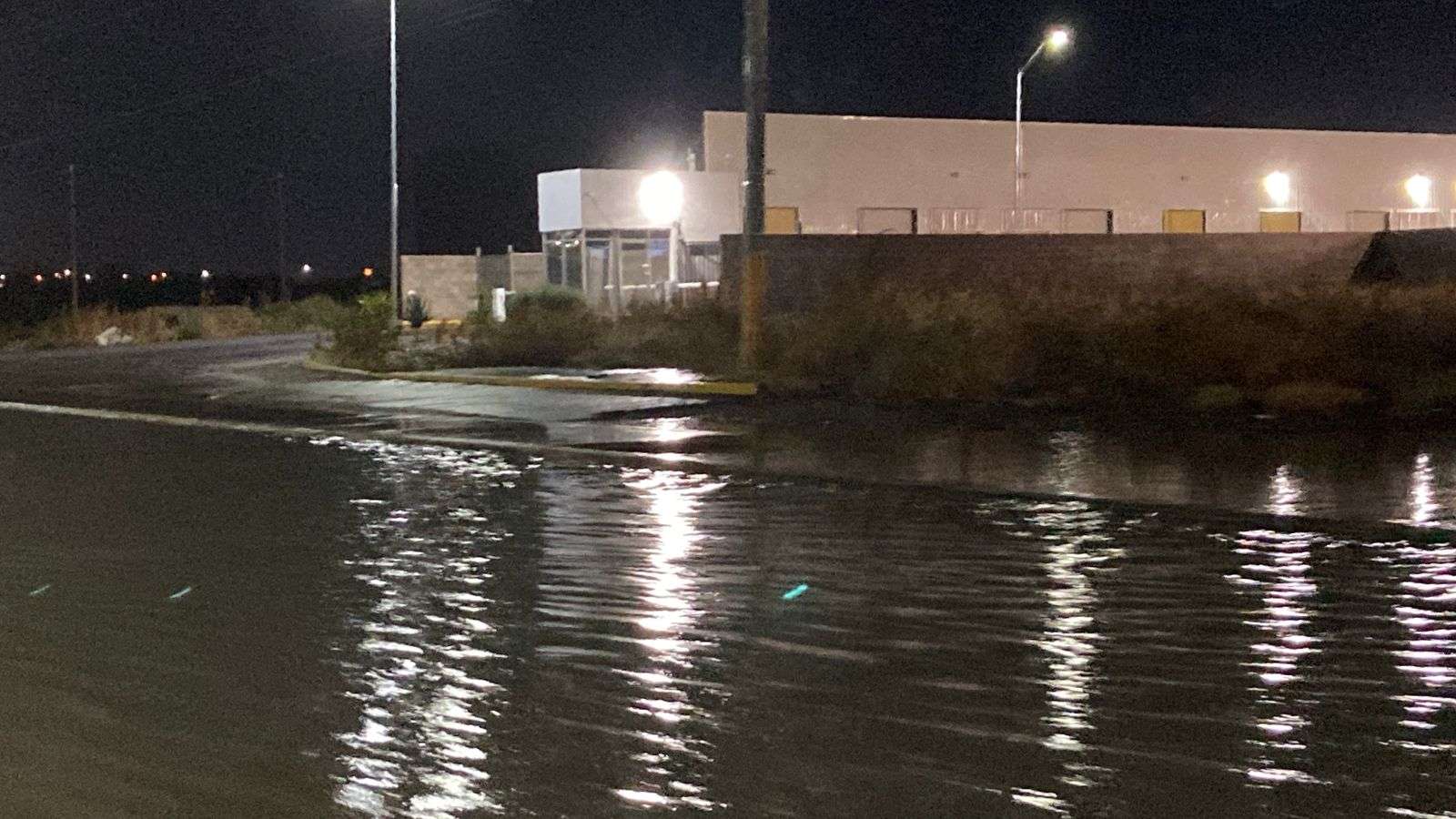 Chihuahua.– Las lluvias registradas la noche y madrugada del lunes provocaron una inundación en la avenida Fuerza Aérea Mexicana, en sentido de sur a norte, lo que generó caos vehicular y afectó a los automovilistas que a diario circulan por la zona.