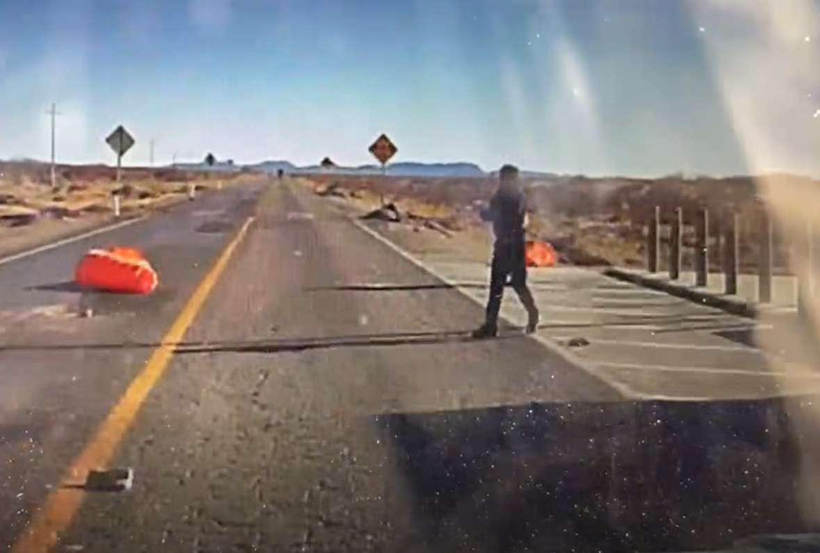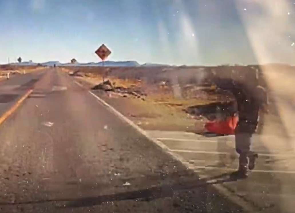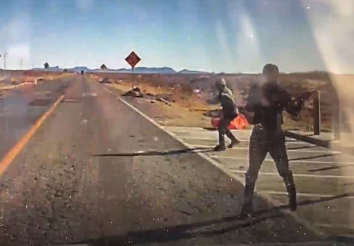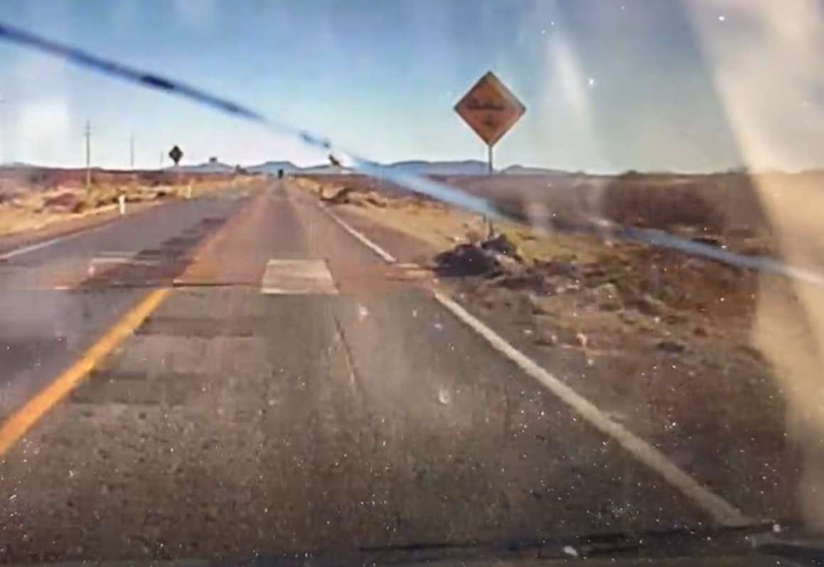 En la grabación se observa el momento en que un automóvil es agredido por personas no identificadas, quienes lanzan rocas de gran tamaño que impactan la unidad cuando pasa por debajo del Arco Centinela, ubicado en el entronque que conecta a Ciudad Juárez con Santa Teresa.