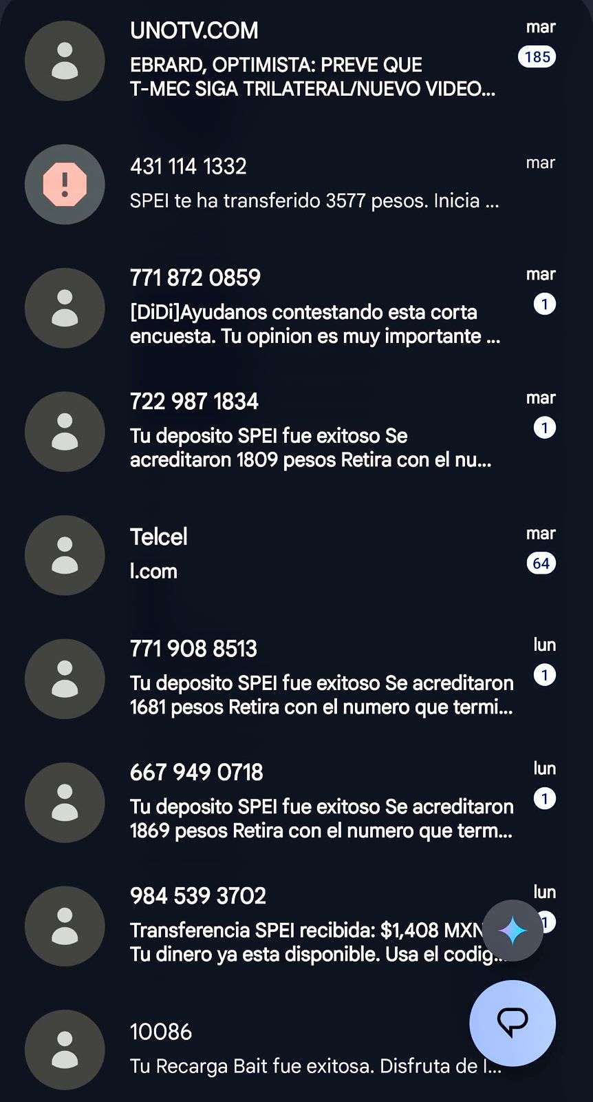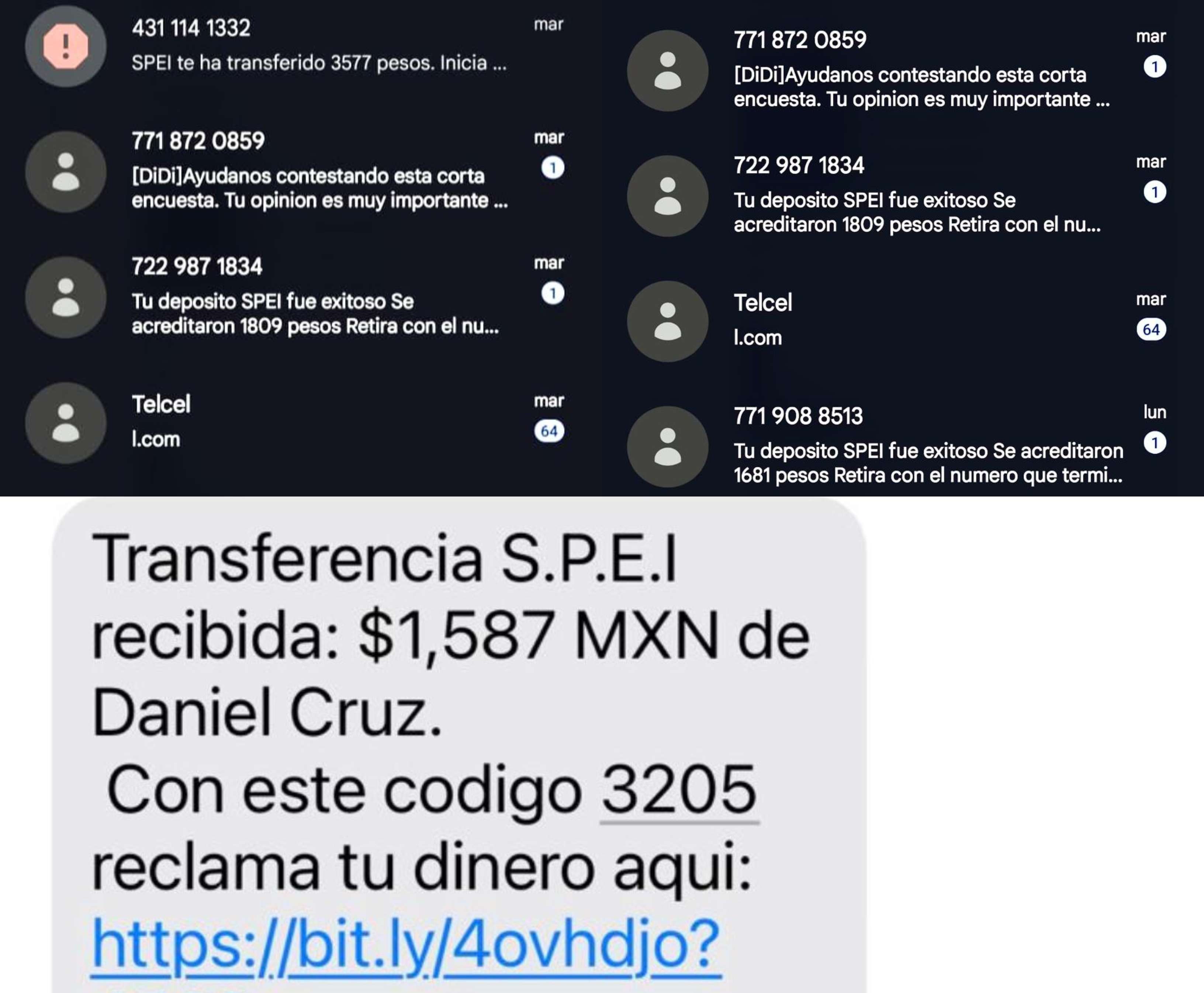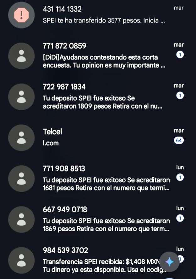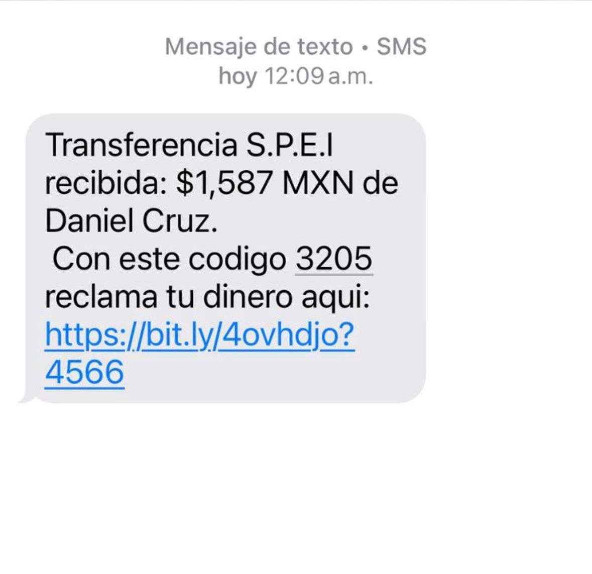 Esta forma consiste en el envío de mensajes de WhatsApp, en la cual le indican al usuario que se ha realizado una transferencia Spei por cierta cantidad de dinero.