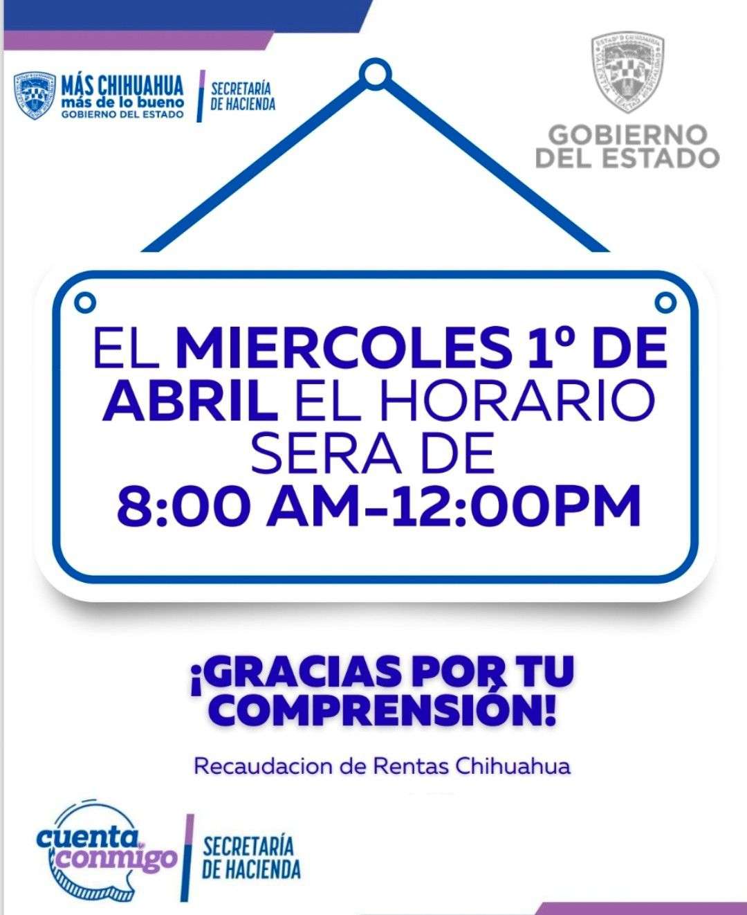 Personal de Recaudación de Rentas detalló que, con motivo del periodo vacacional de Semana Santa, las oficinas permanecerán cerradas los días jueves 2 y viernes 3 de abril.