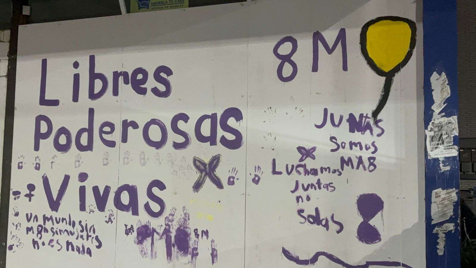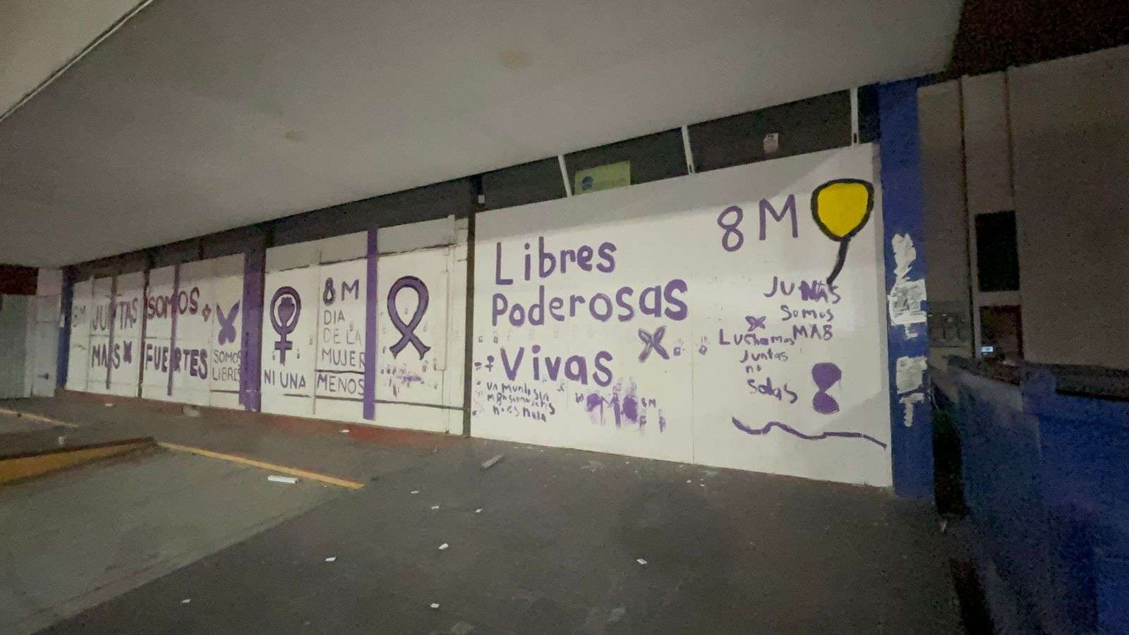 También se observan otras consignas como “Te quiero valiente, libre, independiente, autónoma, fuerte, viva, completa”, además de panfletos de carácter partidista adheridos a las vallas metálicas instaladas en la zona.