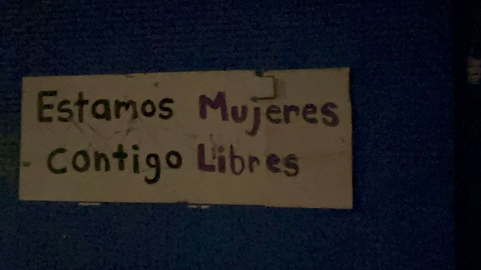 Entre los mensajes visibles se encuentran frases como “No estás sola, Dios está contigo” y “La mujer es la proletaria del proletario”.