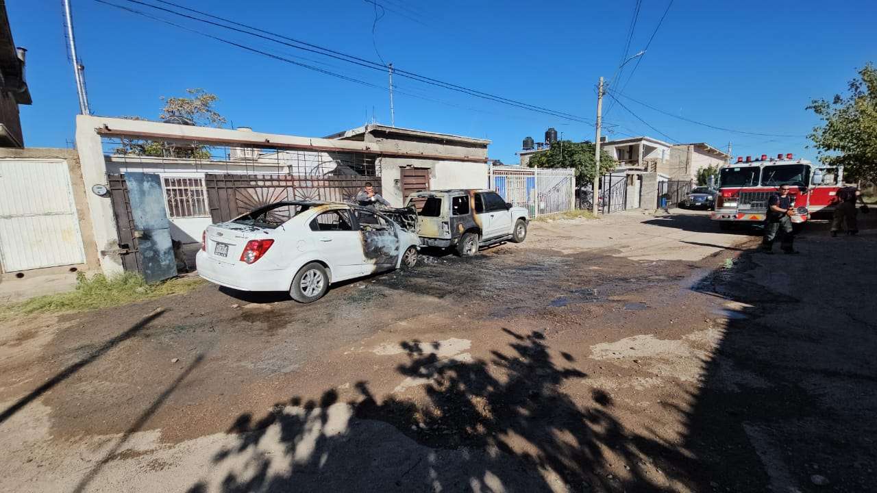 Chihuahua.- Un fuerte incendio de dos vehículos movilizó a autoridades en la Colonia 3 de mayo en la calle Felipe Ángeles cruce con 25 al sur de la ciudad.
