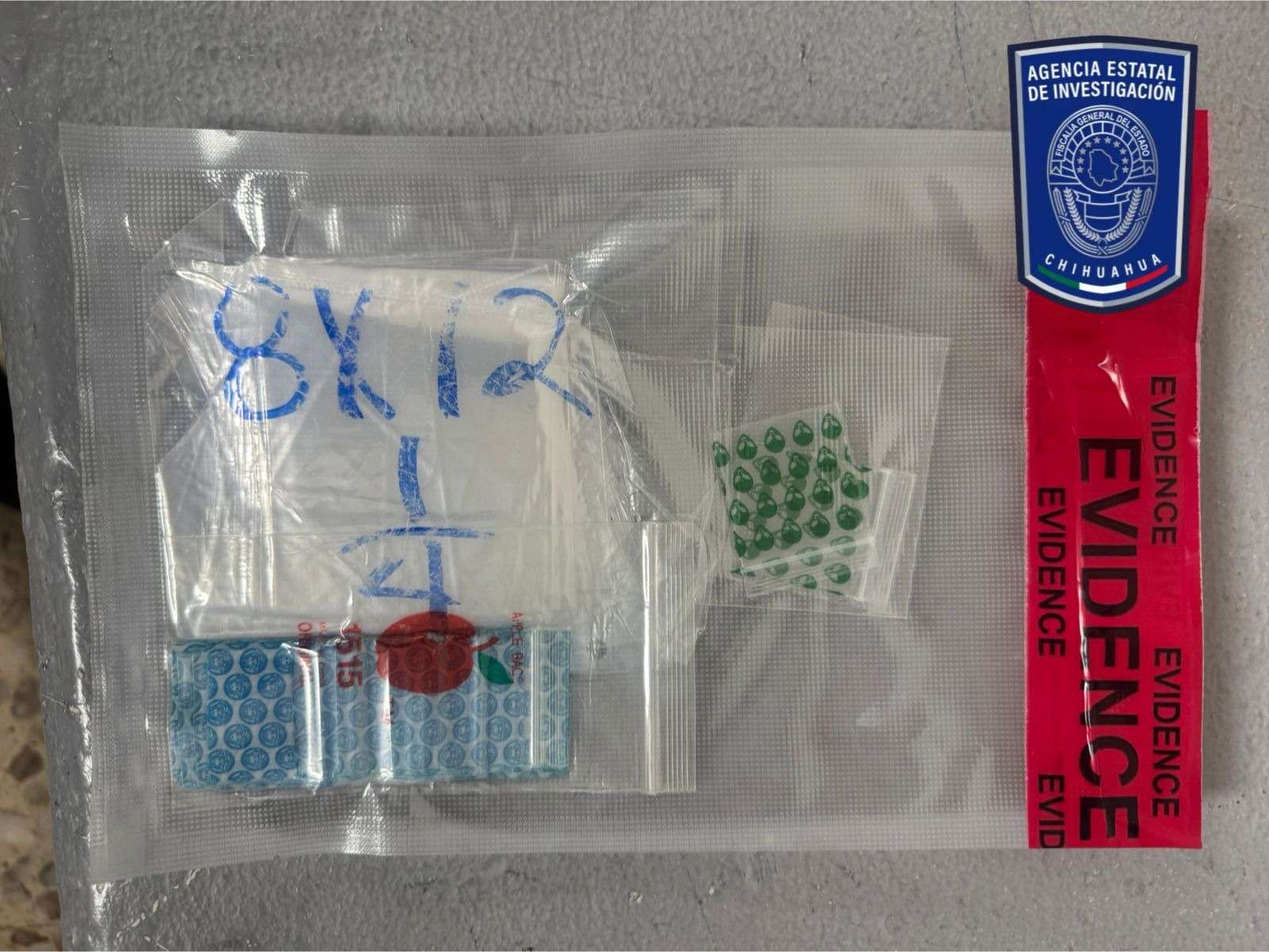 • Una bolsa transparente que contenía más bolsas transparentes, y otras bolsas con figuras
