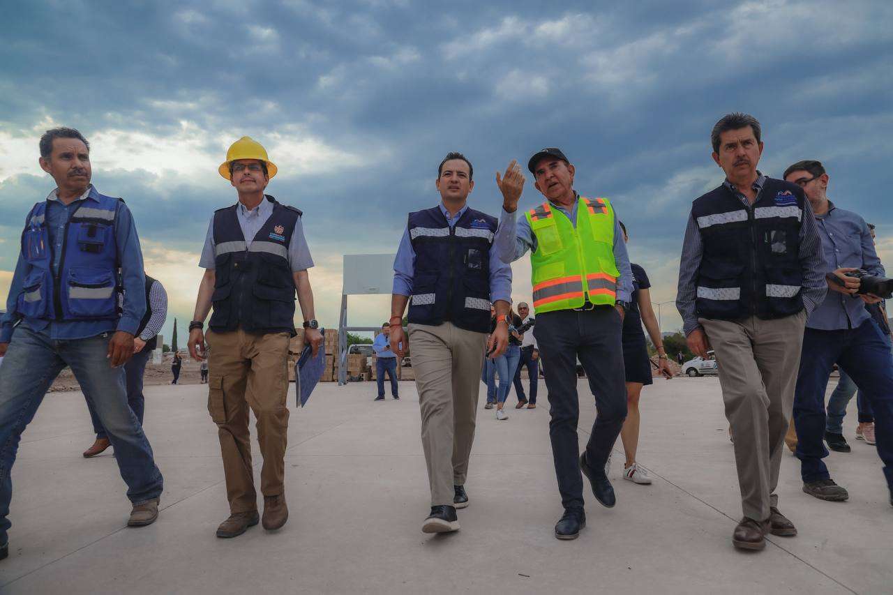 Chihuahua, Chih.- Durante el recorrido de supervisión en la construcción del Polideportivo Luis H. Álvarez, el alcalde Marco Bonilla Mendoza, informó que la obra lleva un 55 por ciento de avance en su primera etapa, en las primeras 4.5 de 13 hectáreas totales, donde desarrollarán canchas para todo tipo de actividad deportiva.