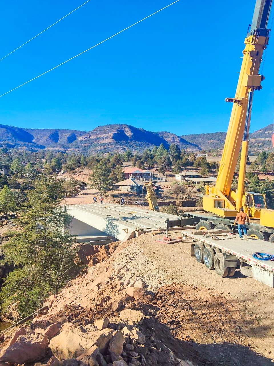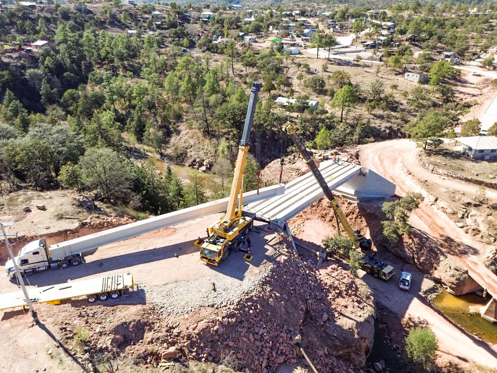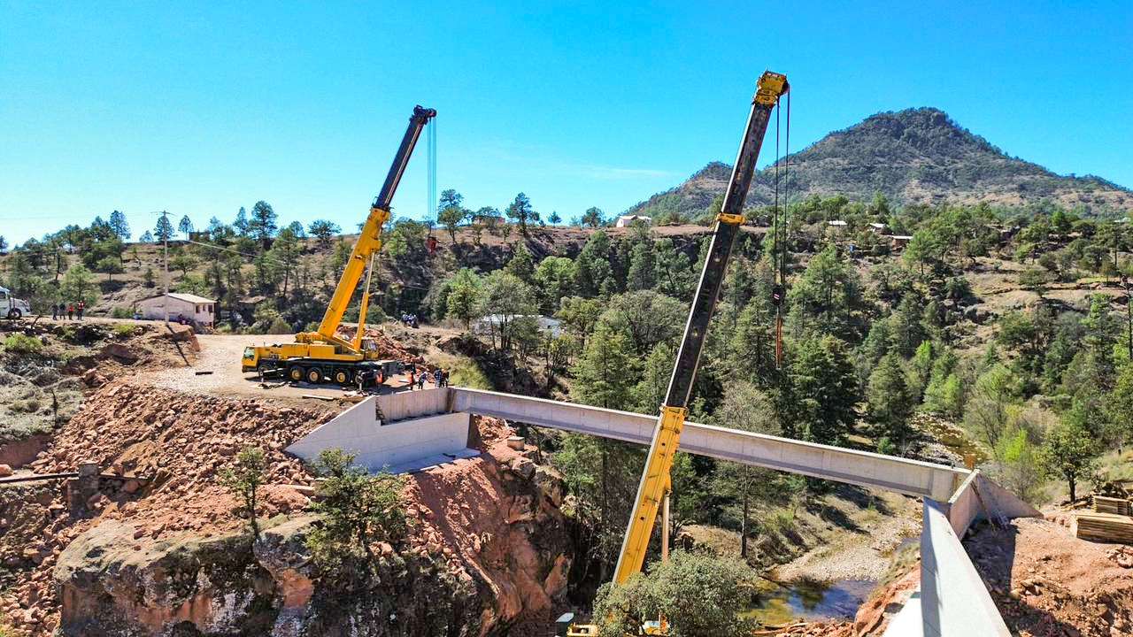 Urique, Chih.- El Gobierno del Estado, a través de la Secretaría de Comunicaciones y Obras Públicas (SCOP) informó que la construcción del puente vehicular en el poblado de Bahuichivo, municipio de Urique, registra un avance del 60 por ciento.