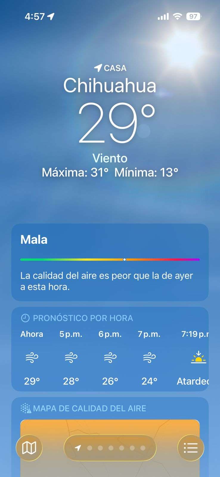 Este fenómeno se debió al ingreso del frente frío número 42 y su masa de aire polar asociada, lo que generó un notable descenso en las temperaturas y vientos intensos en gran parte del territorio chihuahuense. Asimismo, las autoridades advirtieron que la calidad del aire empeoró significativamente respecto al día anterior, por lo que recomendaron evitar actividades al aire libre debido a la alta concentración de partículas suspendidas.