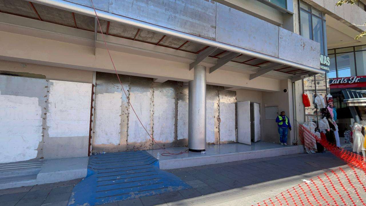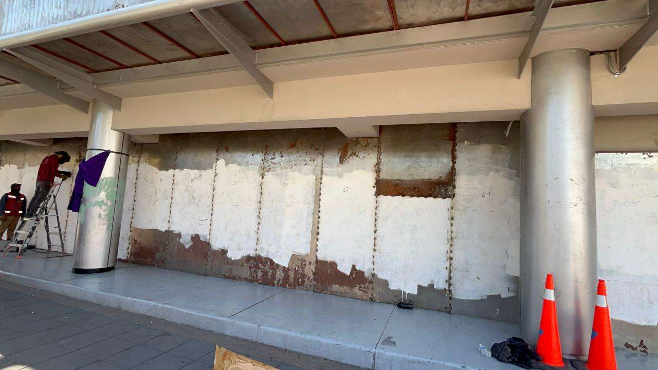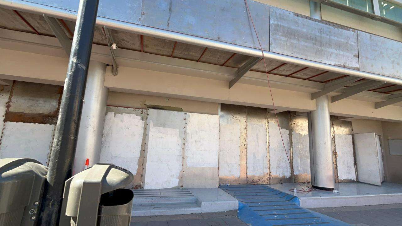 Desde temprana hora, brigadas de mantenimiento comenzaron con la instalación de placas metálicas que cubren por completo la fachada de cristal que da hacia la Plaza de Armas.