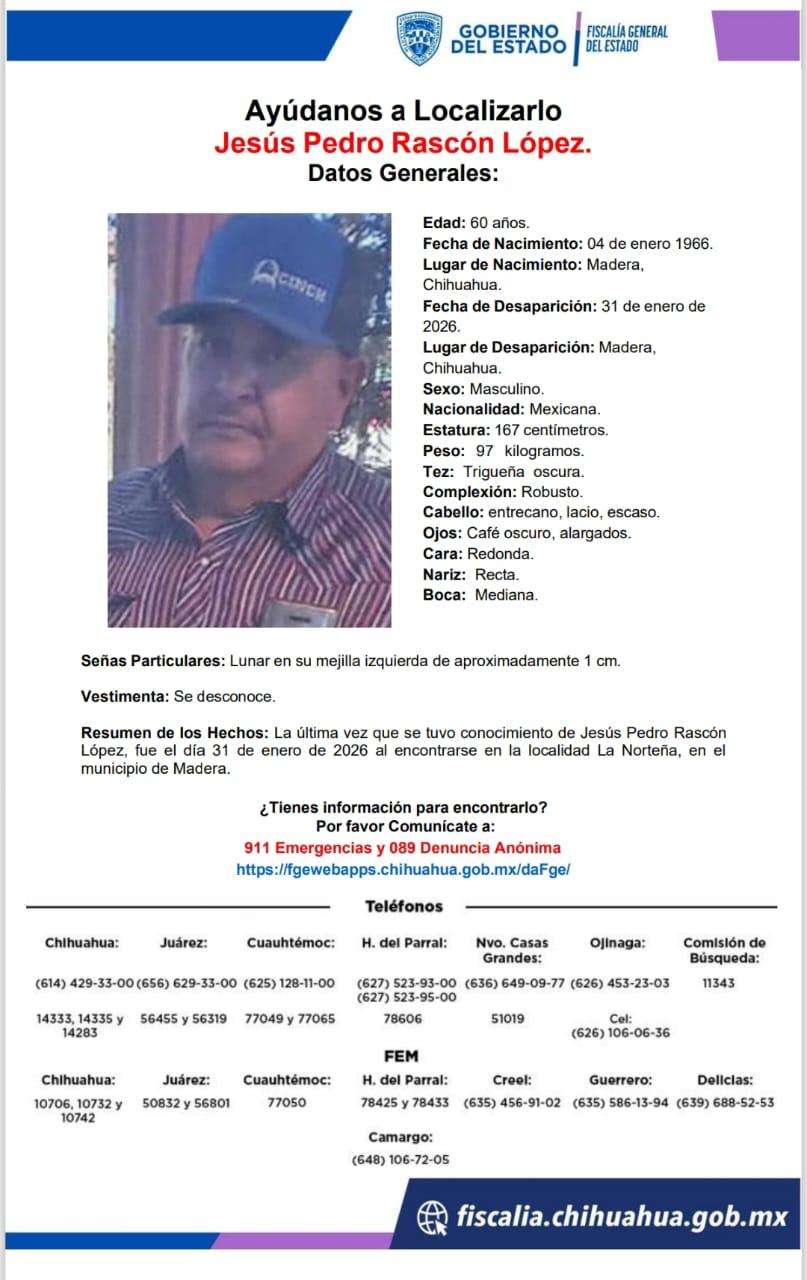 Jesús Pedro Rascón López de 60 años de edad.