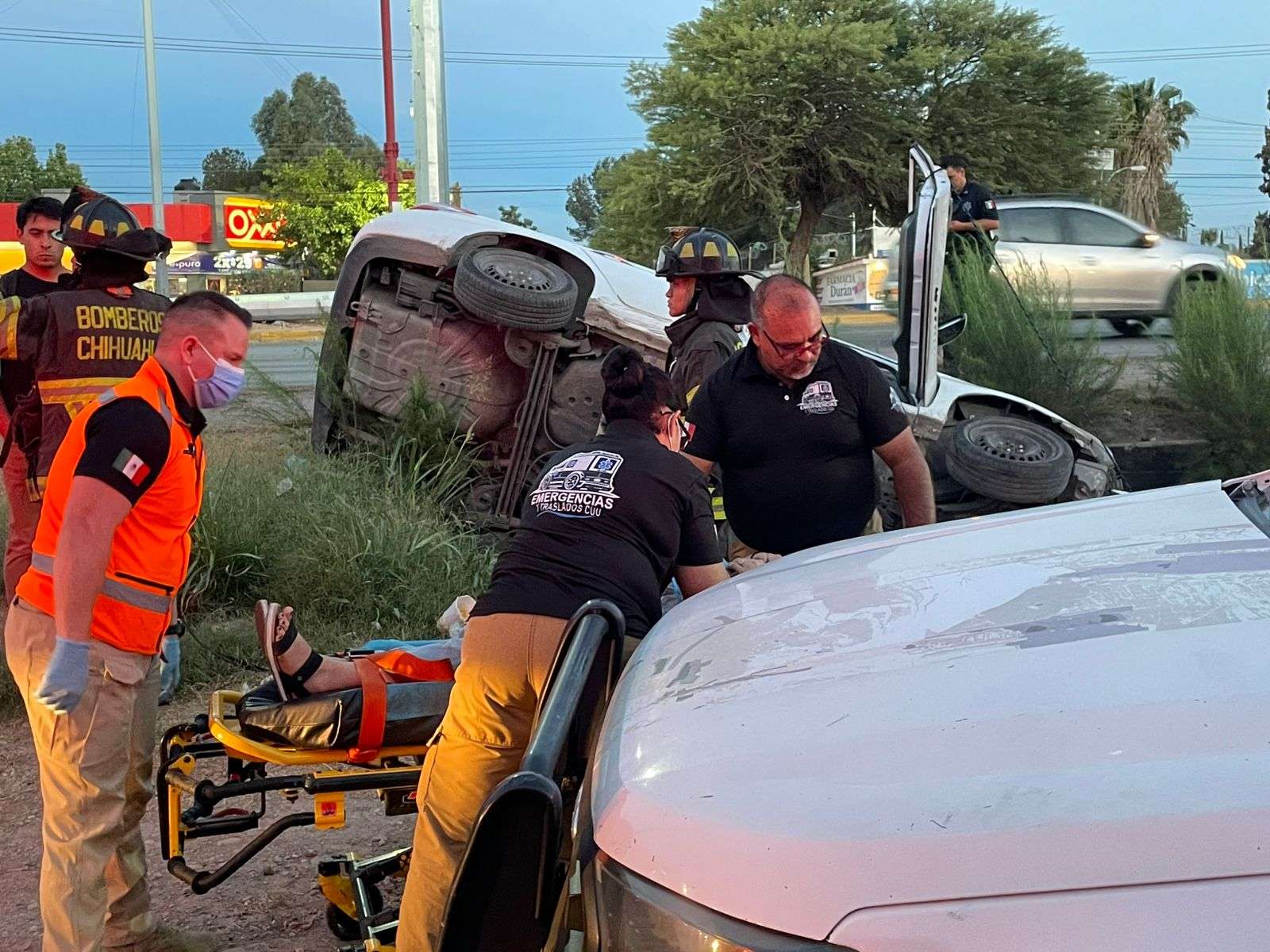 Al lugar arribaron elementos del Cuerpo de Bomberos, quienes implementaron un operativo de rescate utilizando soportes de madera para estabilizar el vehículo y liberar a la conductora, quien no podía salir por sus propios medios.