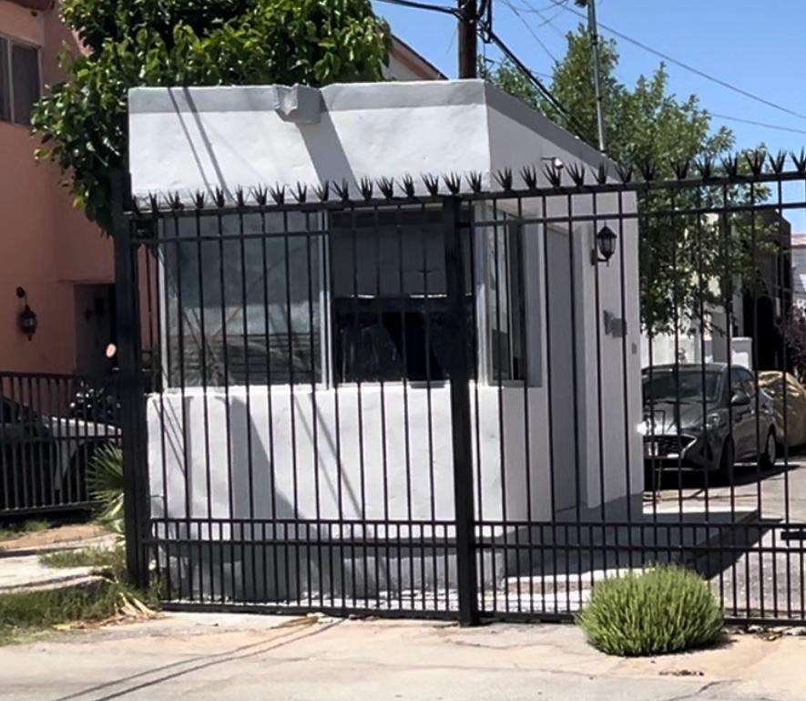 Ahí, se puede ver la caseta abandonada, con algunos daños en los cristales, ahora son los mismos vecinos quienes controlan el acceso y salida de esta colonia convertida en fraccionamiento, incluso para la toma de lectura de los servicios es necesario que cada compañía toque el timbre de una de las viviendas para poder ingresar, lo cual también es molesto para algunas personas, toda vez que en algunas ocasiones se trata de adultos mayores.