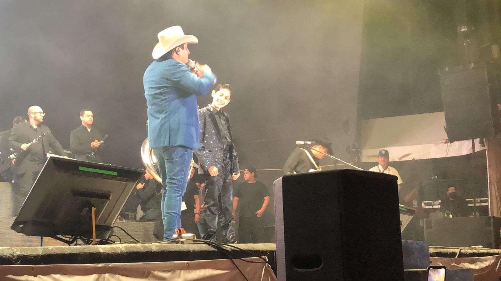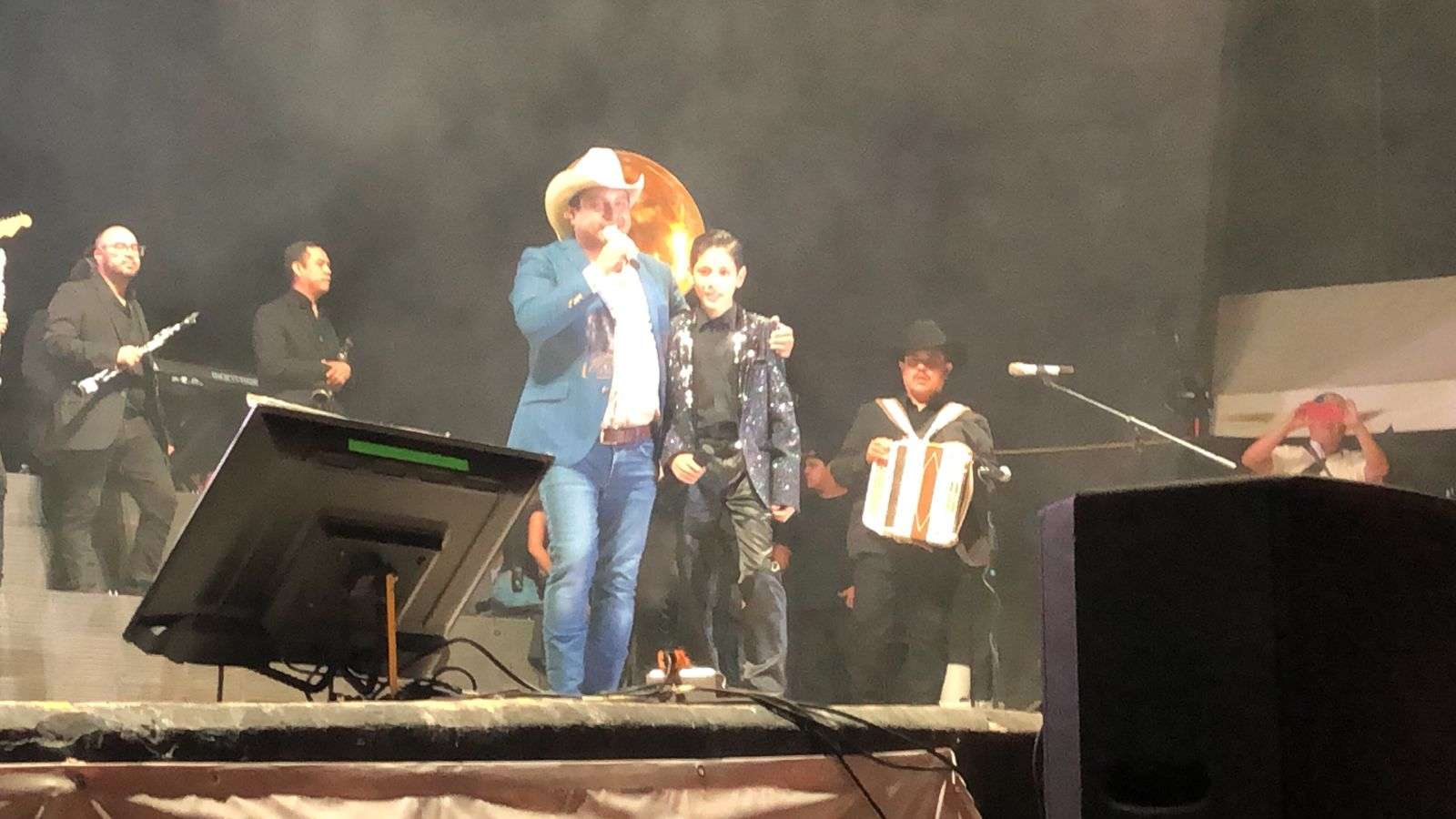 Chihuahua.- El cuauhtemense Ángel Galván, ganador de la voz México kids estuvo presente en el cierre de campaña de Maru Campos y cantó junto a Julión Álvarez.