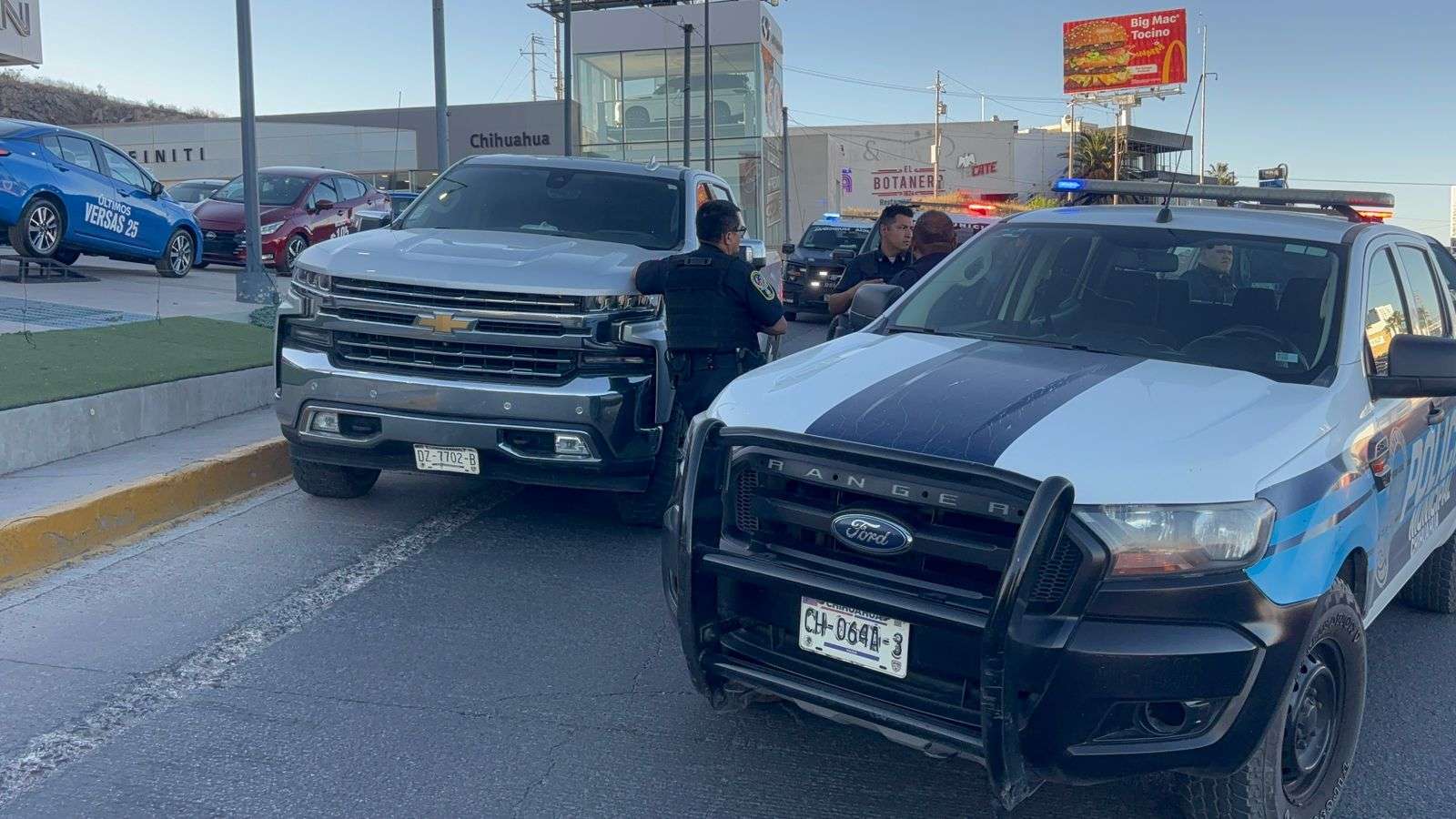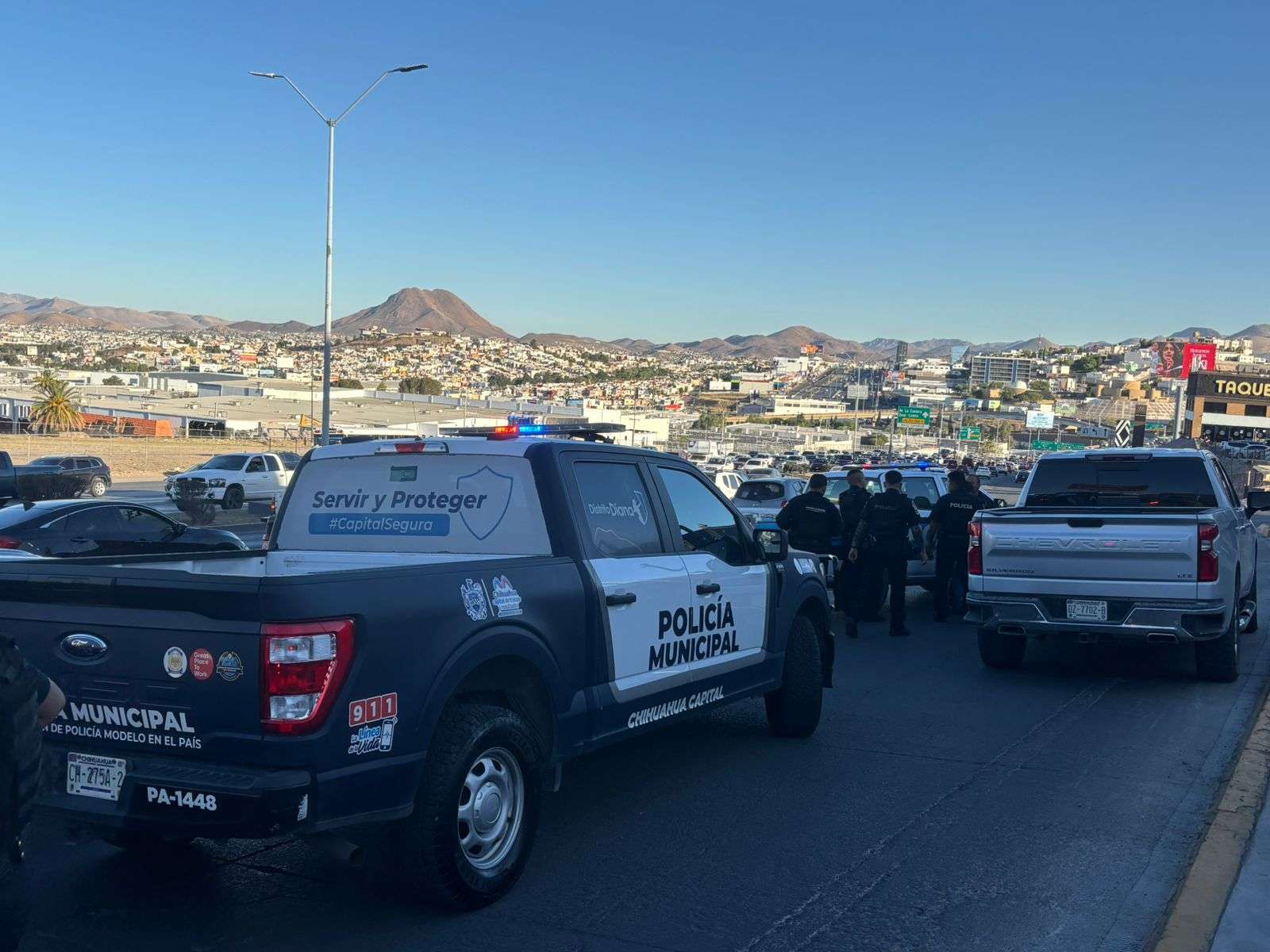 Chihuahua, Chih.- Una intensa persecución policiaca se generó tras el reporte de robo con violencia de una camioneta Chevrolet Silverado en la avenida Homero.