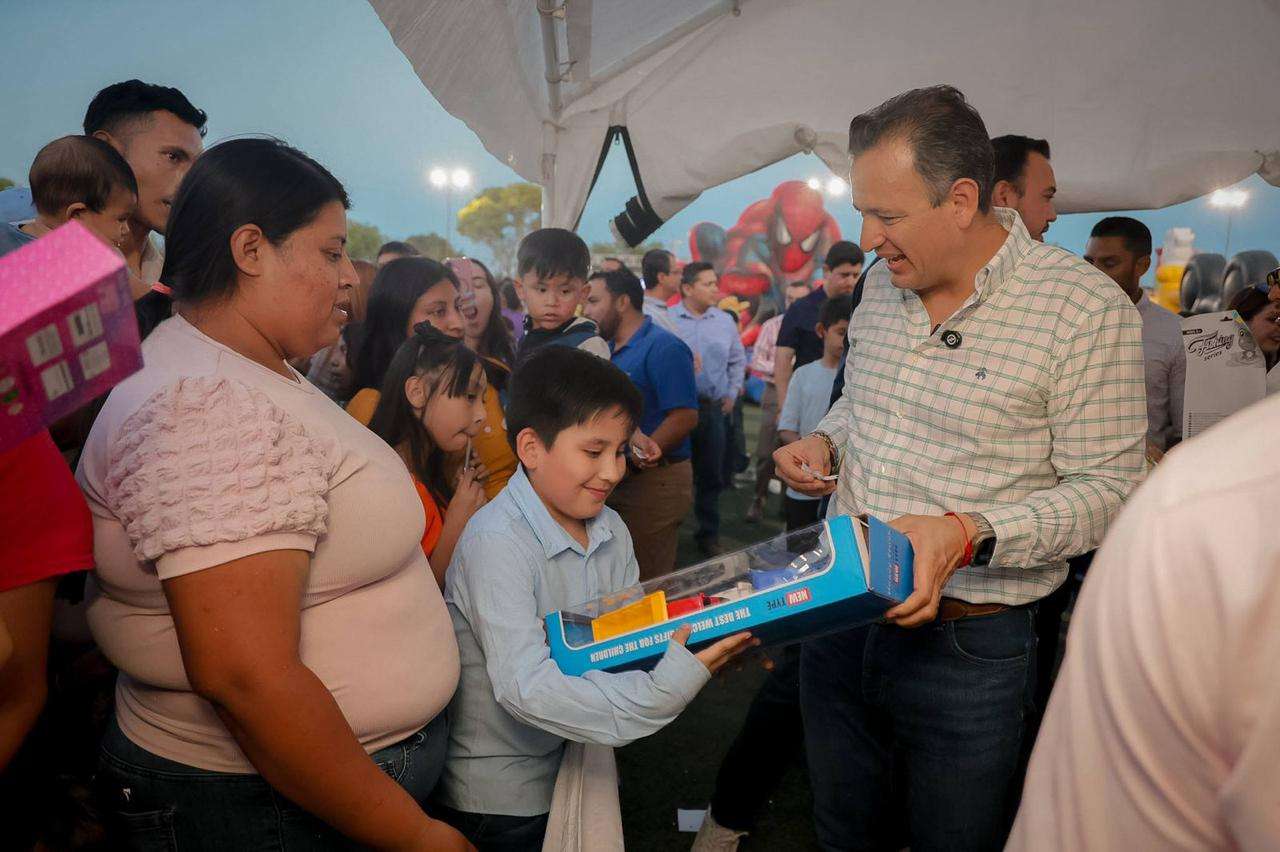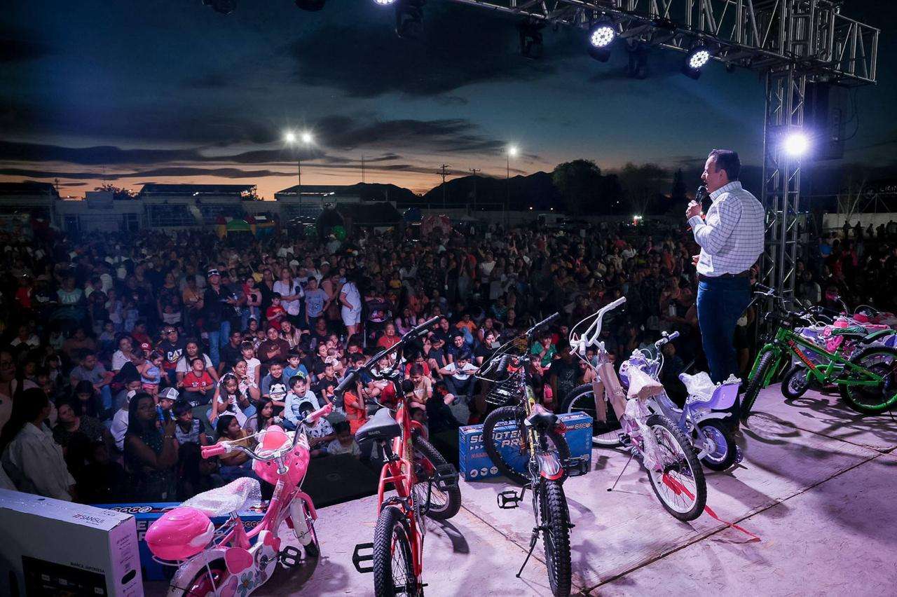 Camargo, Chih. — Como parte de su gira de trabajo por los municipios de Aldama, Saucillo y Camargo, el alcalde de Chihuahua, Marco Bonilla, atendió la invitación del alcalde Jorge Aldana para participar en el Mega Festival de la Niñez, un evento que reunió a más de 2 mil 500 camarguenses en el campo de futbol de la colonia Revolución.