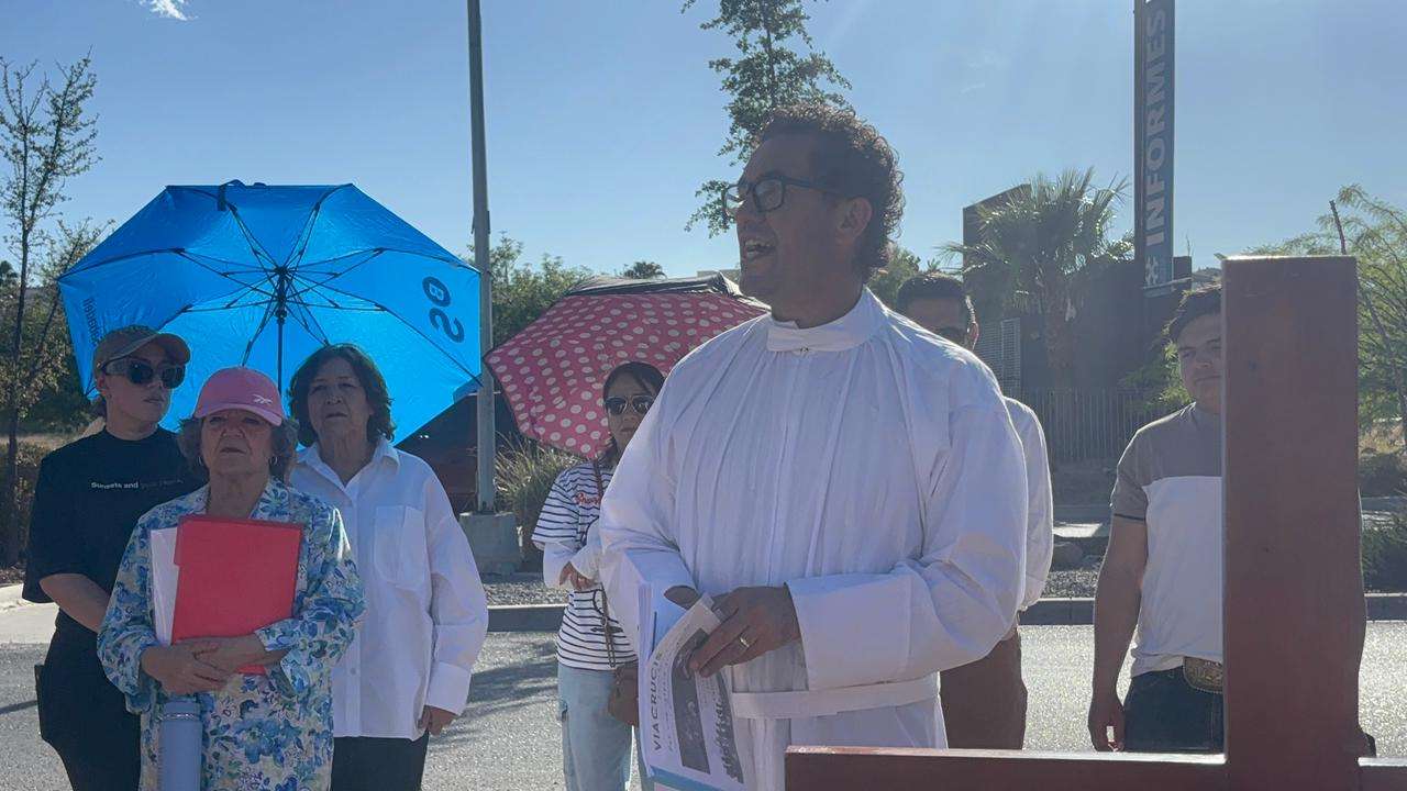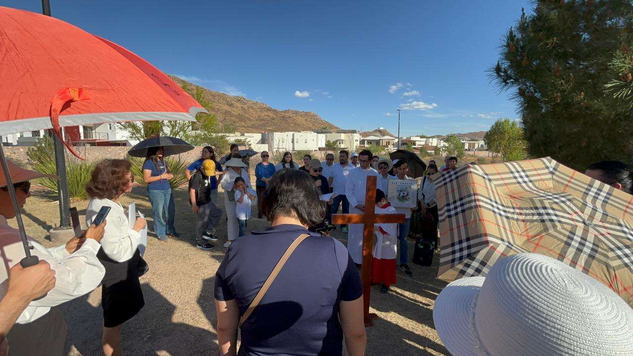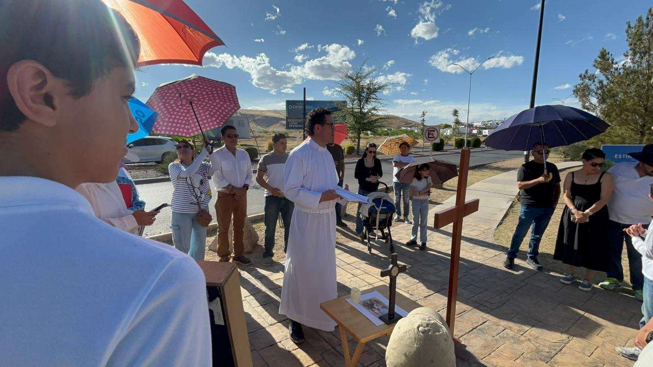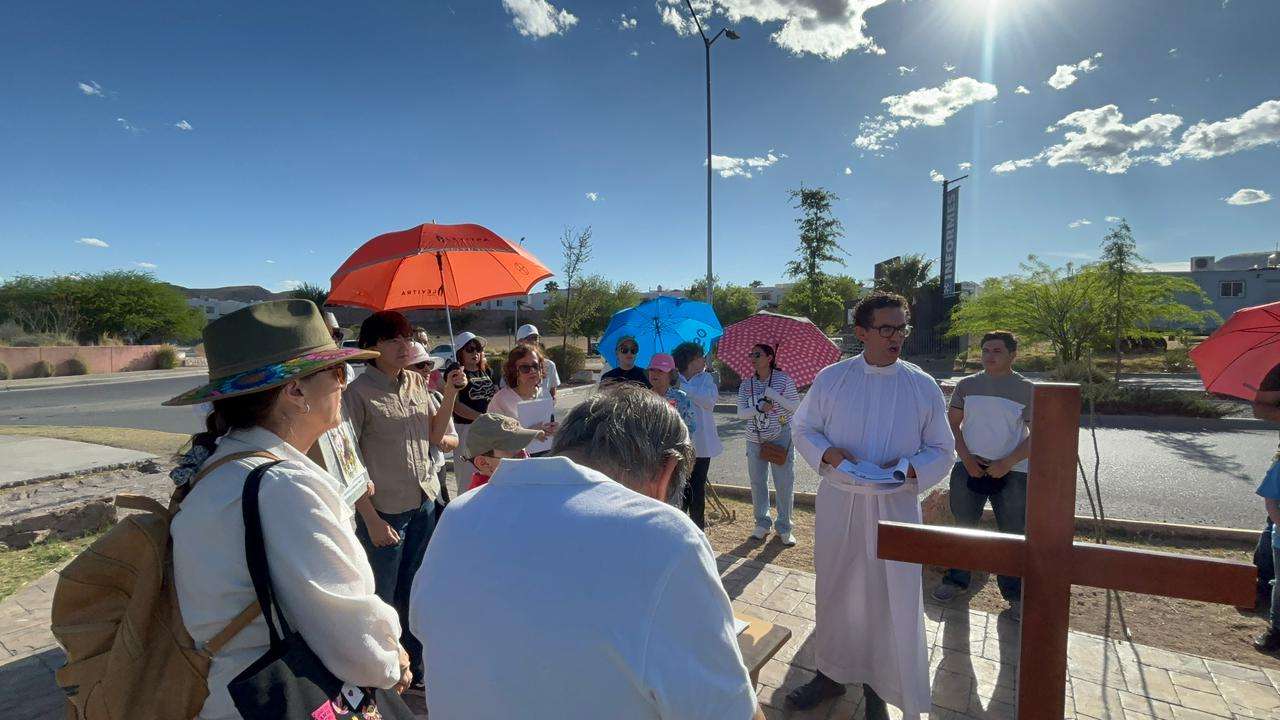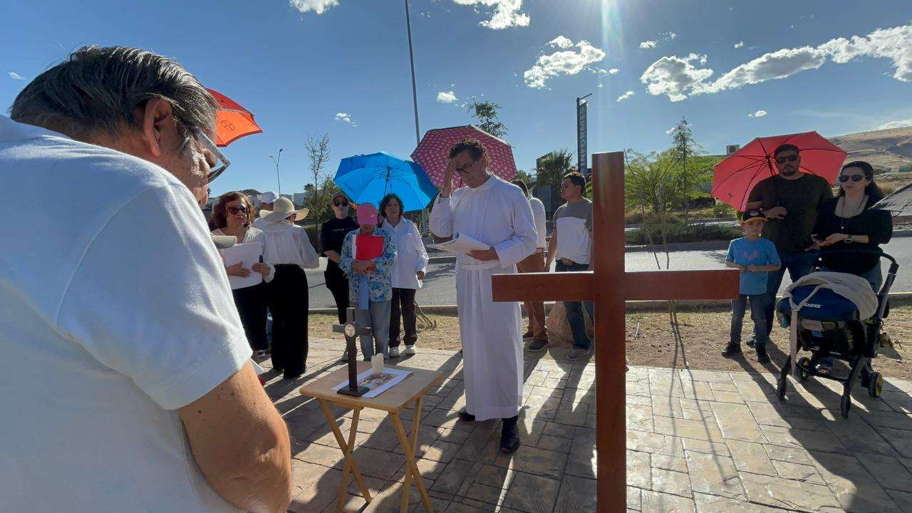 Chihuahua.- Bajo la guía del Diácono Giovanni Guzmán, vecinos de diversos fraccionamientos aledaños a la Misión Padre Pío realizaron este Viernes Santo un acompañamiento espiritual en la Pasión y Muerte de Jesús.