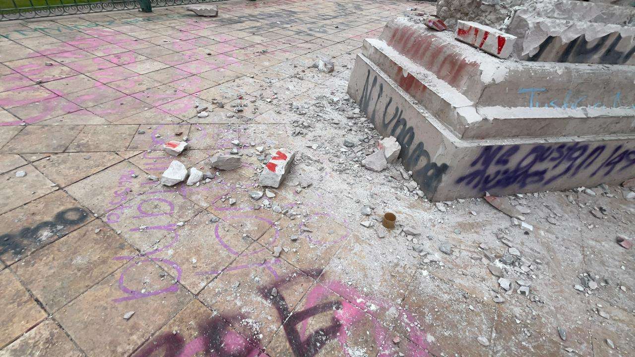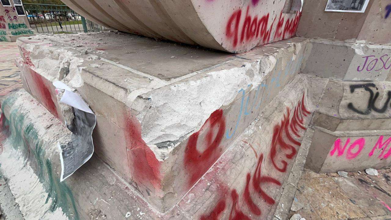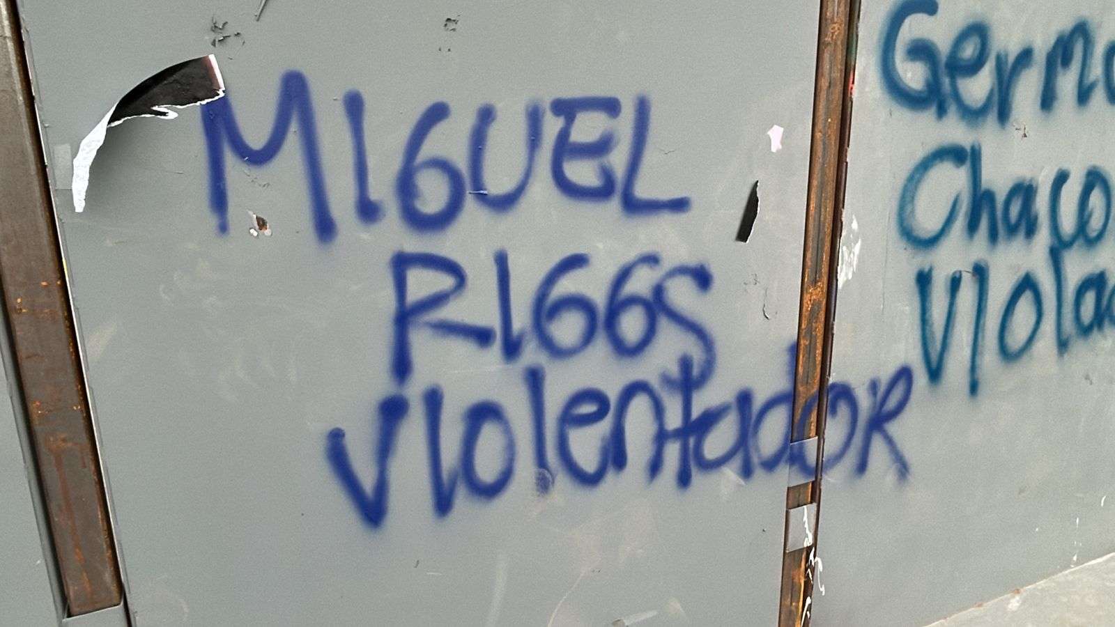 Los muros de acero lucen cubiertos con las huellas de la protesta, consignas en aerosol, nombres de víctimas y reclamos de justicia que fueron plasmados durante la tarde de ayer.