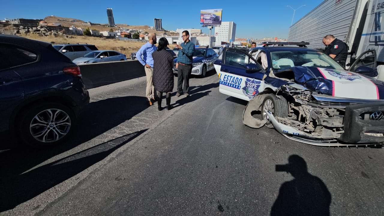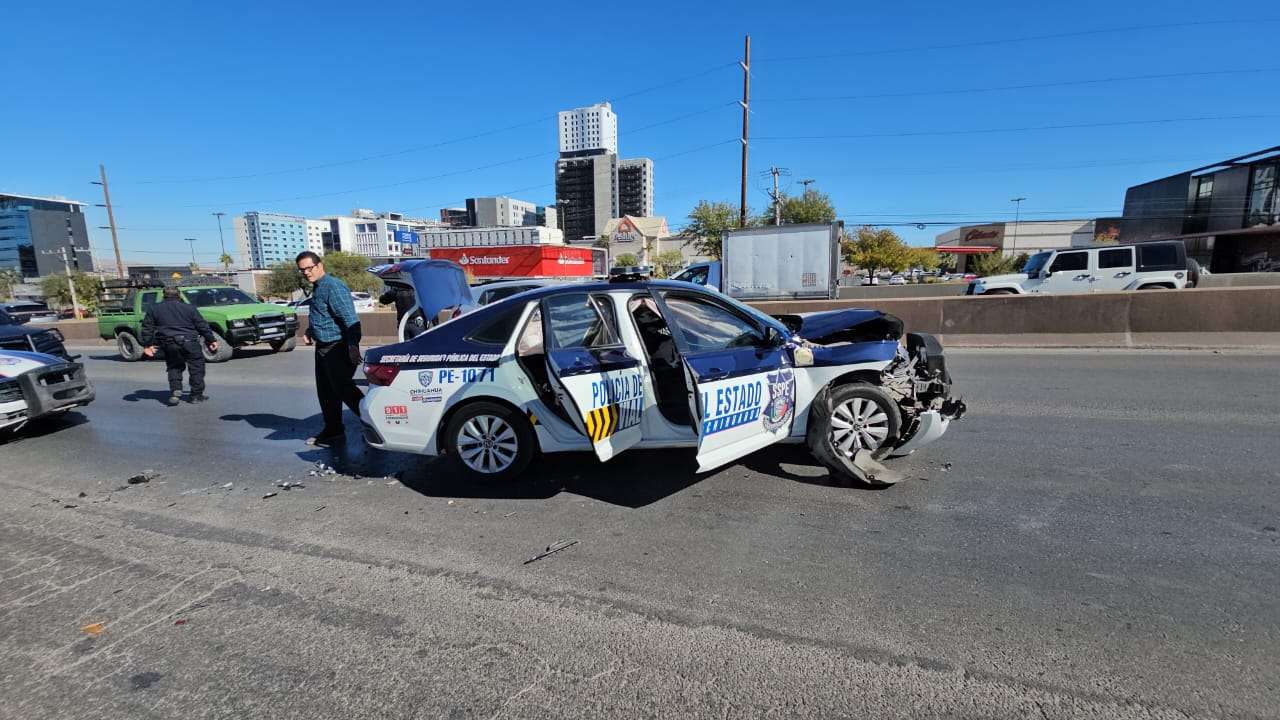 Chihuahua.- Una elemento de la Policía Vial, a bordo de la patrulla PE-1071, se vio involucrada en un accidente vial mientras circulaba por el carril de extrema derecha del Periférico de la Juventud, en sentido de norte a sur.