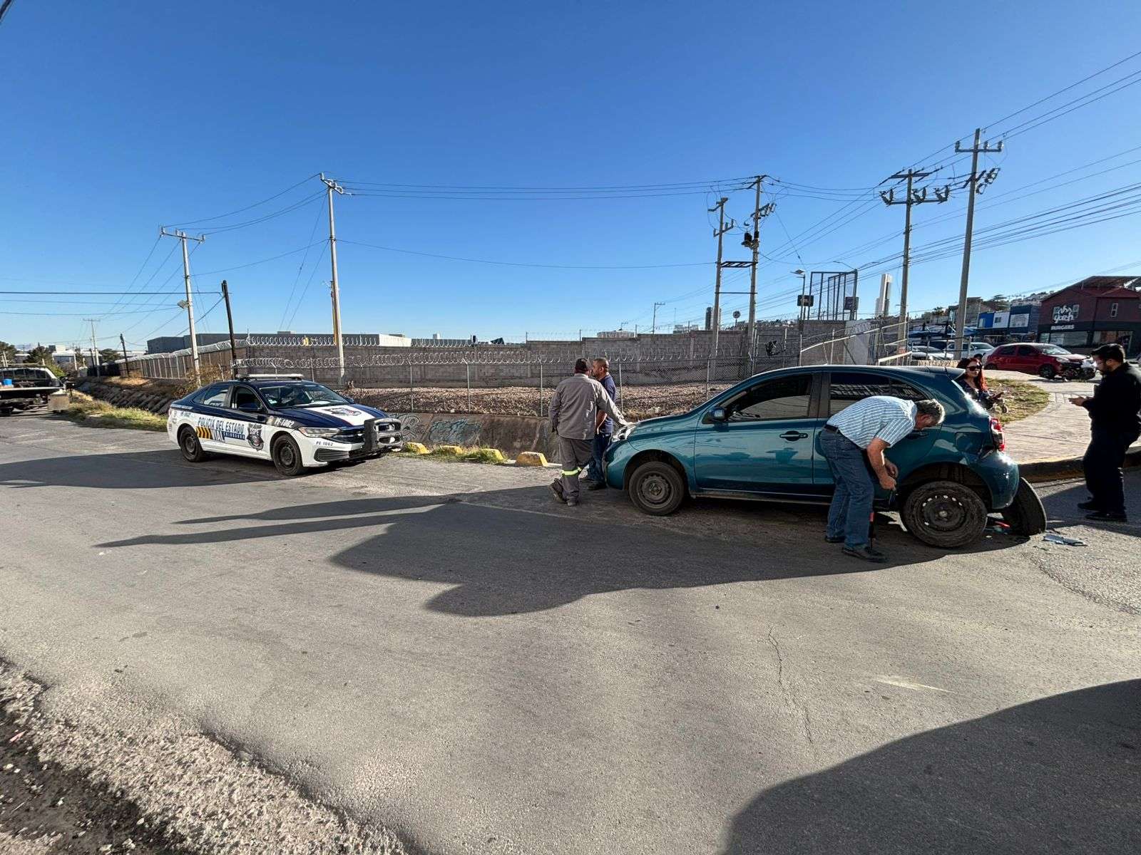 Chihuahua, Chih.- Un joven de 19 años que circulaba a bordo de una motocicleta en sentido de sur a norte chocó por alcance contra un vehículo Nissan March en el Periférico de la Juventud, a la altura del cruce con la calle Nirvana, en la colonia Ignacio Rodríguez, lo que dejó cuantiosos daños materiales en ambas unidades.