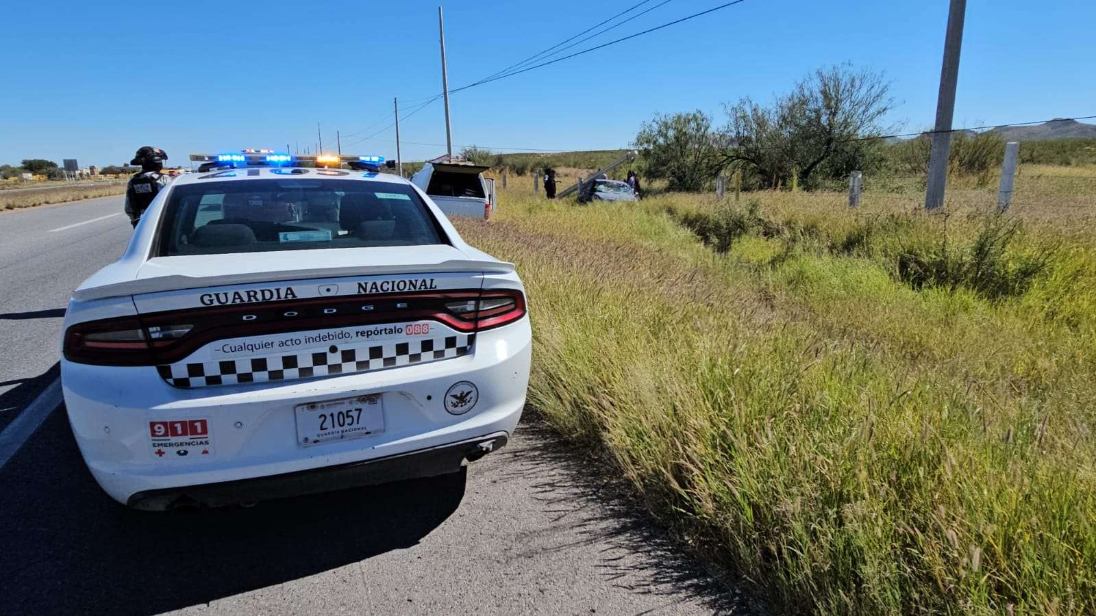 De acuerdo con el reporte de la Guardia Nacional, el vehículo salió del camino hacia el camellón central y posteriormente se desvió hacia el costado derecho de la vía, donde se impactó contra una valla metálica y finalmente contra un poste de concreto, el cual terminó derribado.