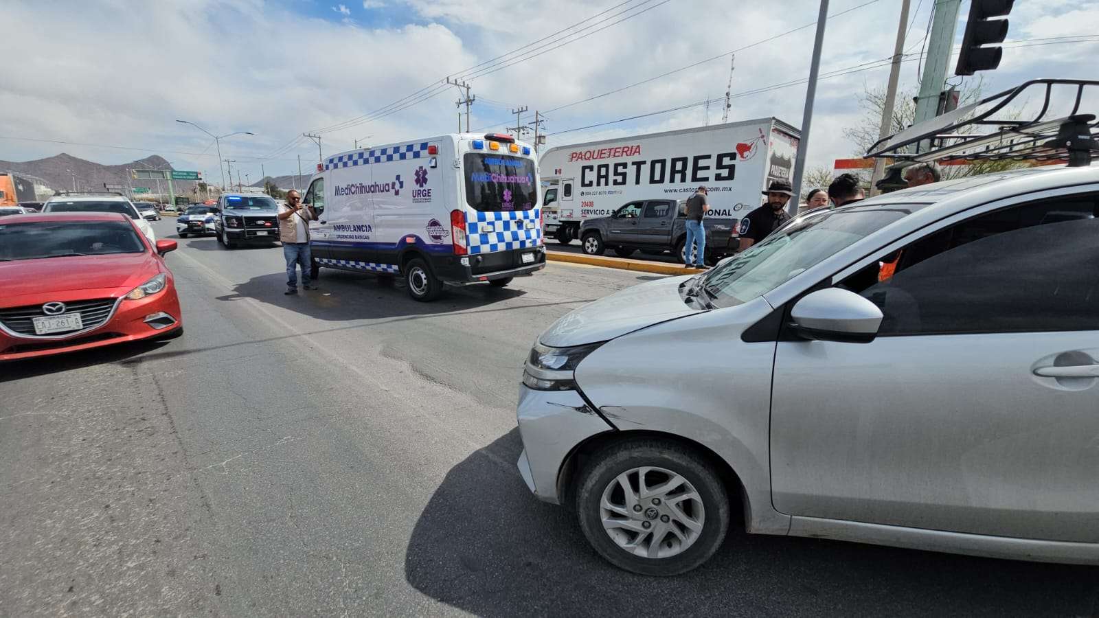 Chihuahua.- Una patrulla de la unidad de inteligencia policial de la Dirección de Seguridad Pública Municipal provocó un choque al salir de la Comandancia Norte para incorporarse a la avenida Homero, en sentido de este a oeste, aparentemente sin la debida precaución.