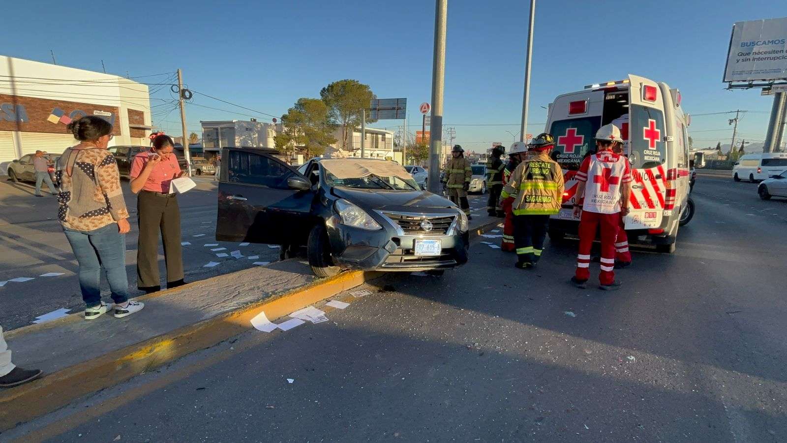 Chihuahua.- Un choque que dejó una persona lesionada, se registró en la avenida Tecnológico y casi Juan Escutia, entre un auto Nissan Versa y un camión de pasajeros de la ruta Riberas con número económico 380.