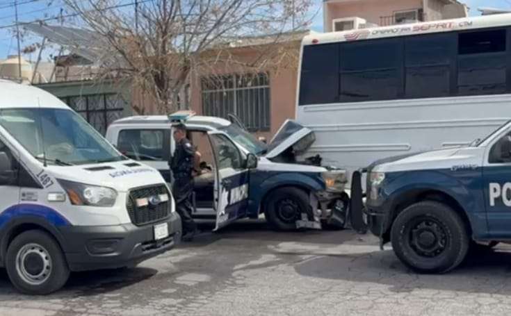 Chihuahua.- Dos elementos femeninos de la Policía Municipal resultaron lesionadas luego de que la patrulla que tripulaban chocara aparatosamente contra la parte trasera de un camión de transporte de personal.