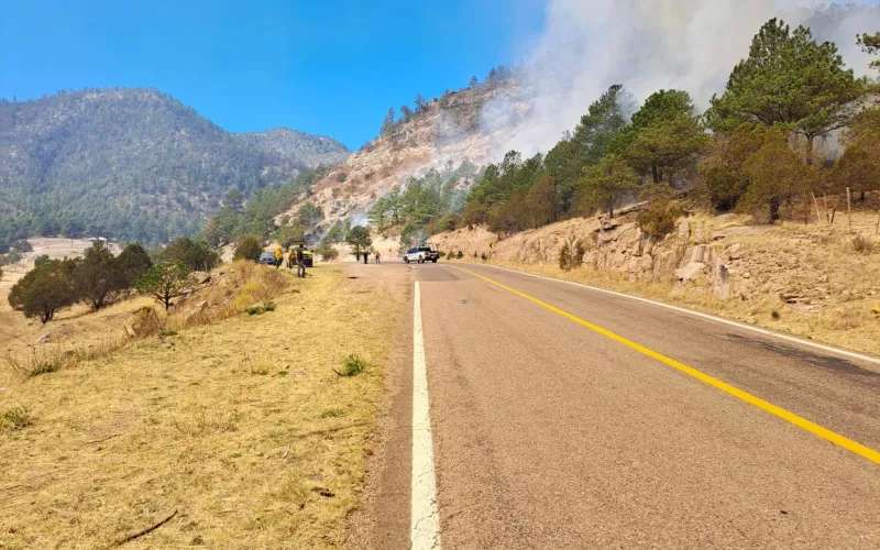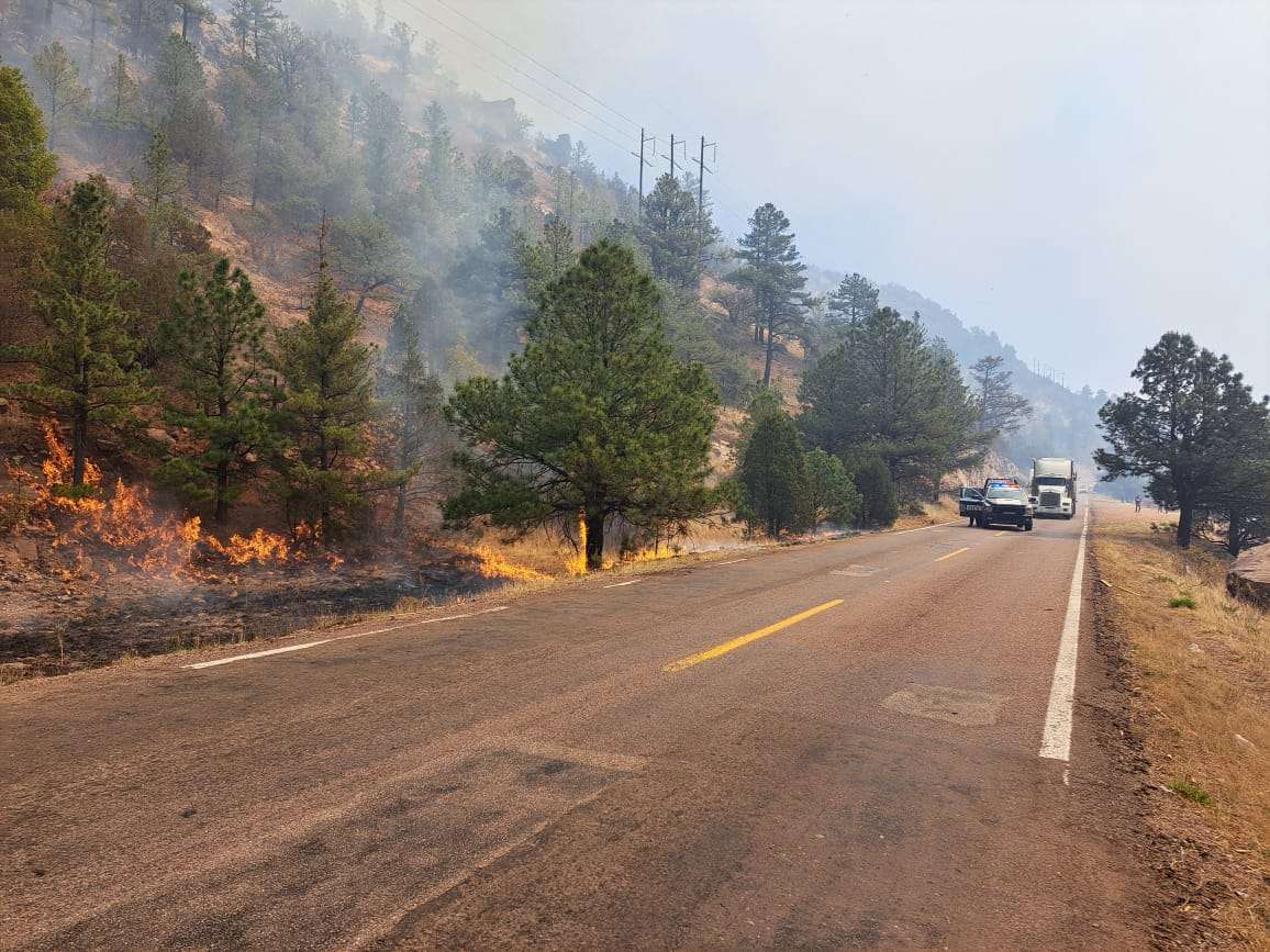 Los elementos se apostaron sobre la carretera que comunica al poblado de la Junta con el municipio de Bocoyna, para controlar el tránsito vehicular mientras las cuadrillas trabajaron en la primera línea de batalla contra el fuego, cerca de la localidad de El Nogal.
