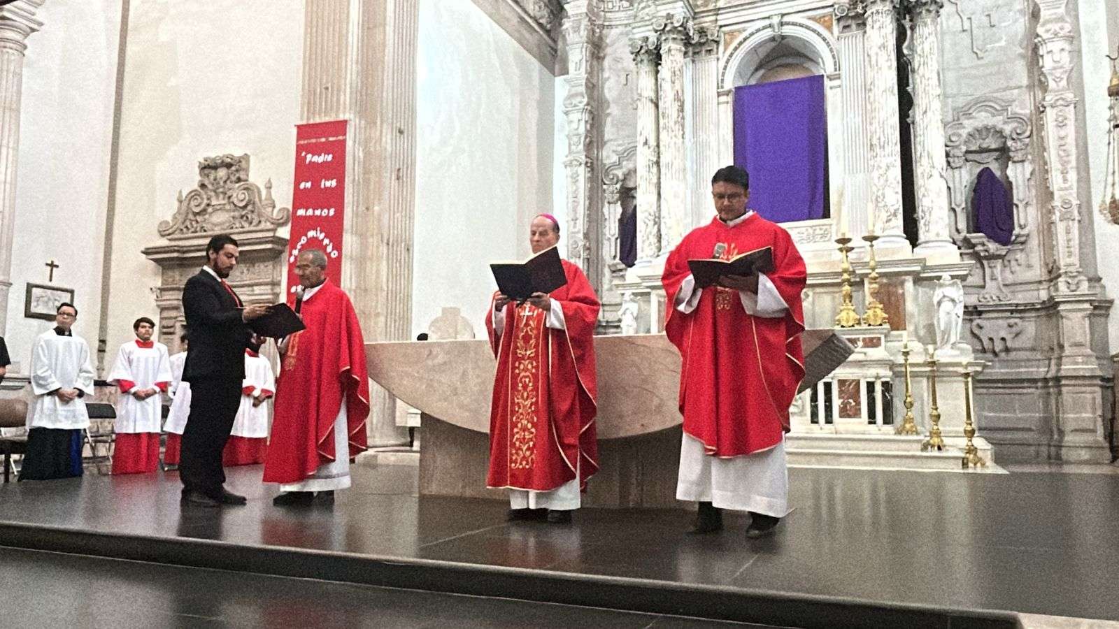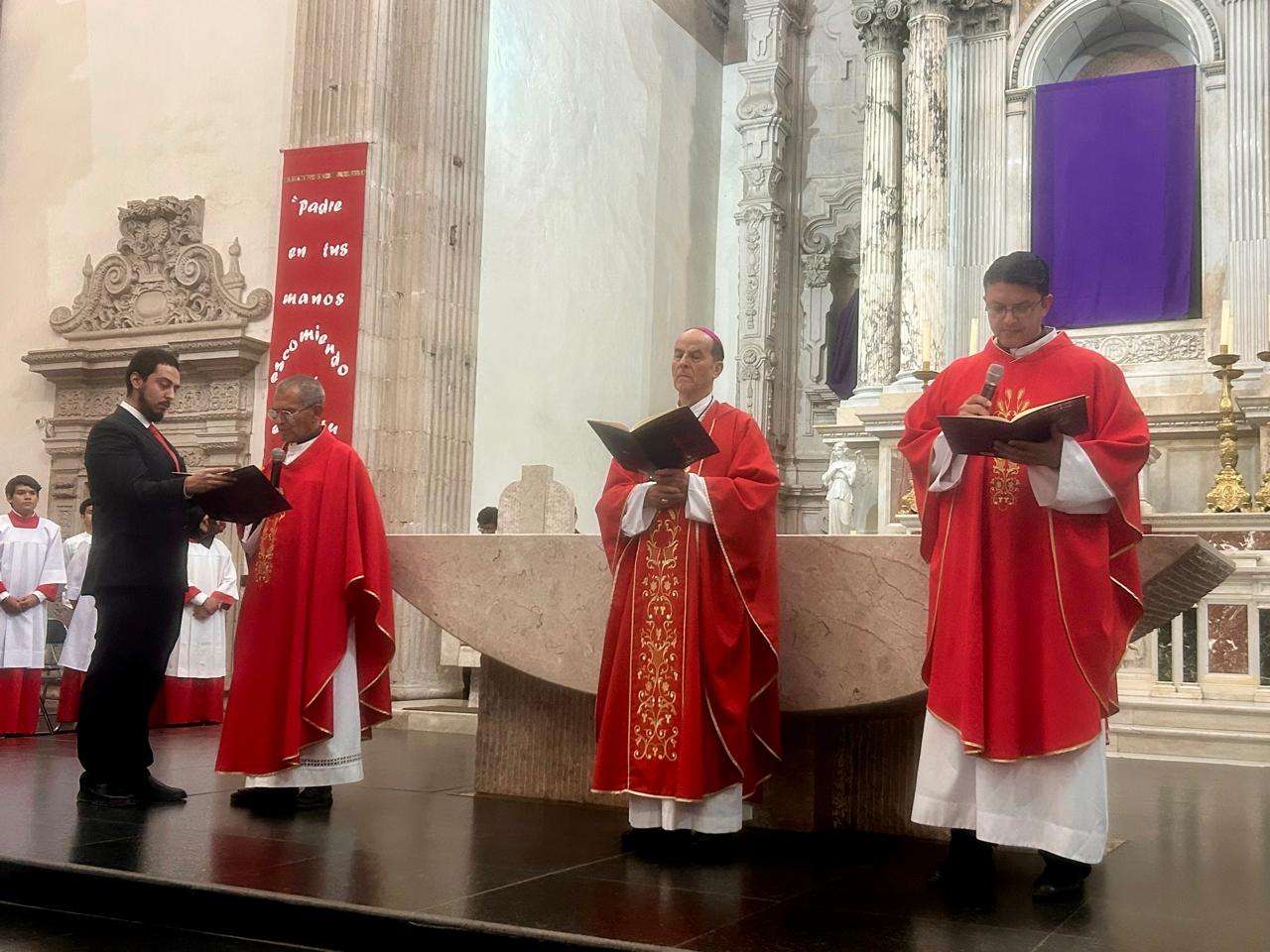 La ceremonia fue encabezada por el Arzobispo de Chihuahua, Constancio Miranda Weckmann, quien guio a la comunidad en el rito que inició con el dramático silencio característico de este día de luto.